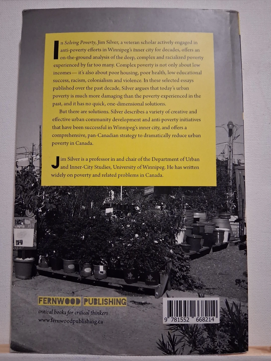 This book by Jim Silver analyzes anti-poverty efforts in Winnipeg's inner city. It explores complex poverty issues and offers creative solutions. The author is a professor at the University of Winnipeg. It's published by Fernwood Publishing.