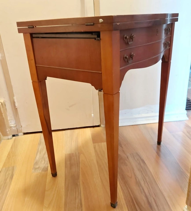 This Singer sewing machine is in working condition and is from the early 60's. It could use some TLC as shown in the photo but the parts are there and the machine runs (was being used by one of my kids). It has been siting covered for some time now and deserves to have a new home where it will be restored to its former glory and appreciated. This has the Singer trademark and another plaque that says 191J. The piece is heavy and you will need an appropriate vehicle to transport it. Pickup is at Morningside and Lawrence Ave.