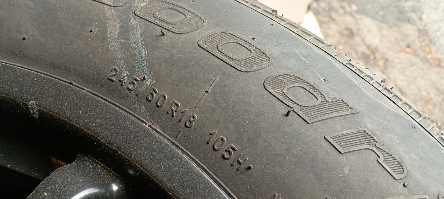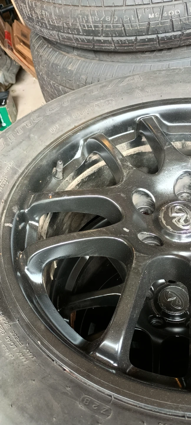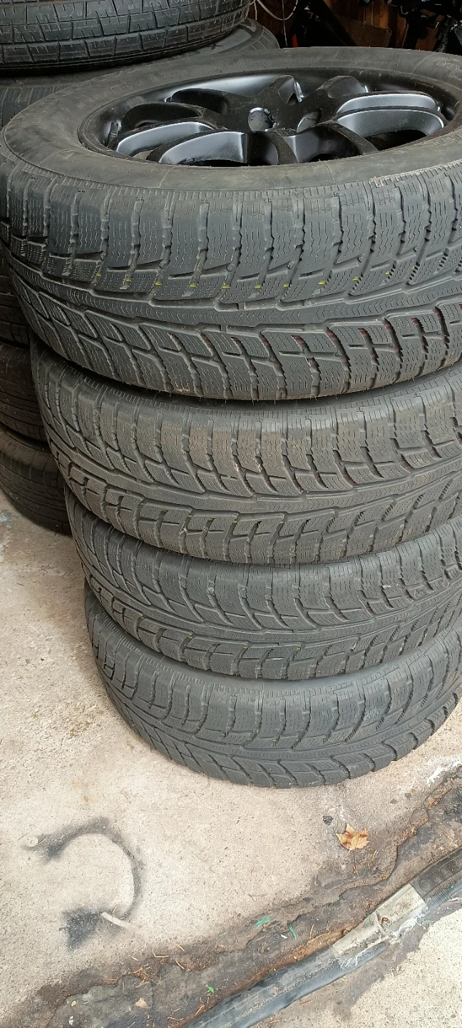 Set of four used tires and rims. Tire size is 245/60R18, with a speed rating of 105H. The DOT code indicates manufacturing in the 36th week of 2018. These would be great for winter driving conditions. 5x114