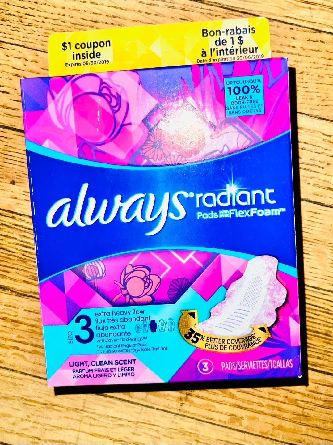 BONUS - 3 Always Radiant pads size 3 Extra Heavy Flow ๐