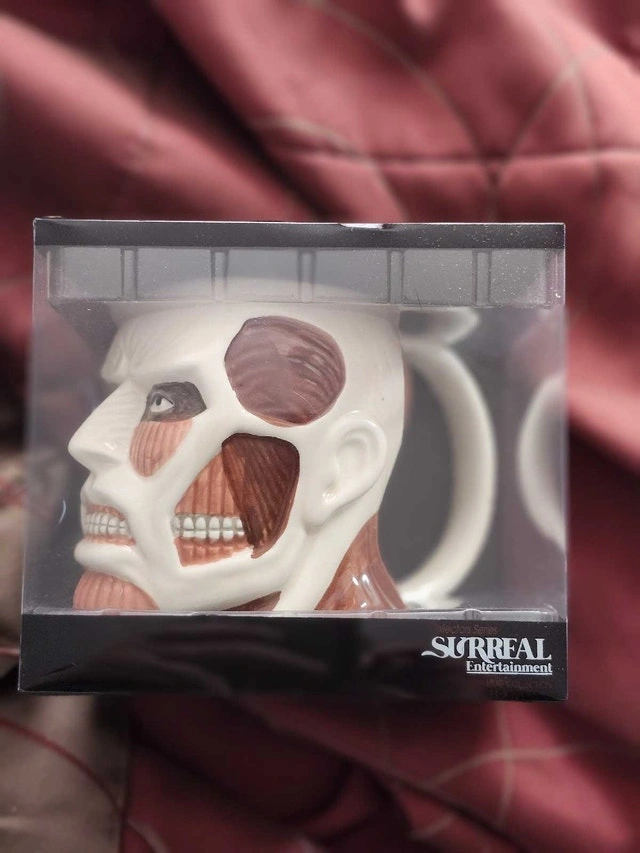 Get ready to raise a toast to the Titans with this brand new Attack on Titan Colossal Titan sculpted mug! This impressive 20-oz mug is perfect for enjoying your favourite hot or cold beverages while showing off your love for the hit anime series. Packaged in its original box, it is ready to be added to your collection or gifted to another AoT enthusiast. This mug is still available!