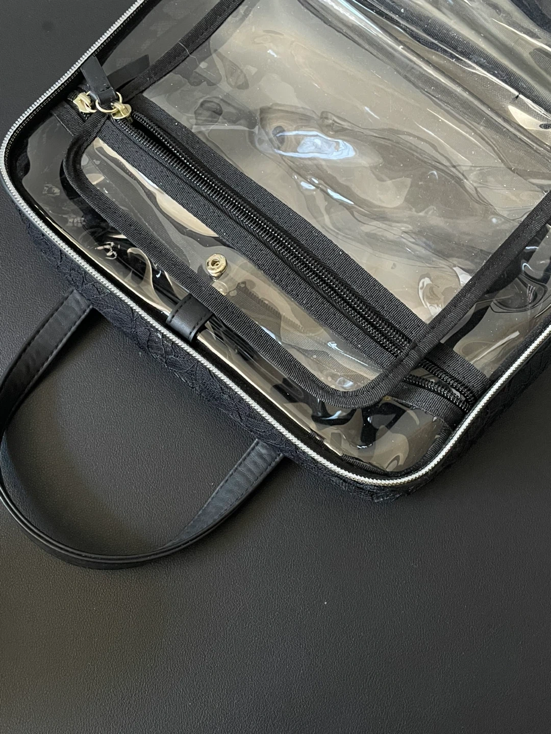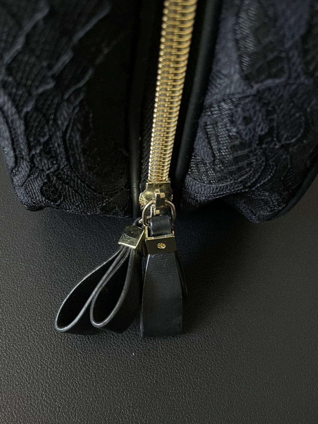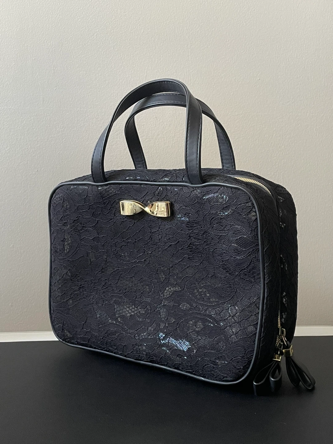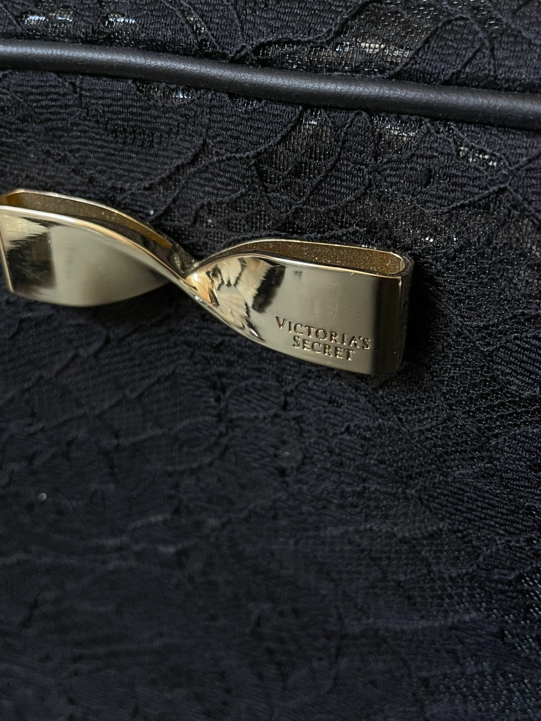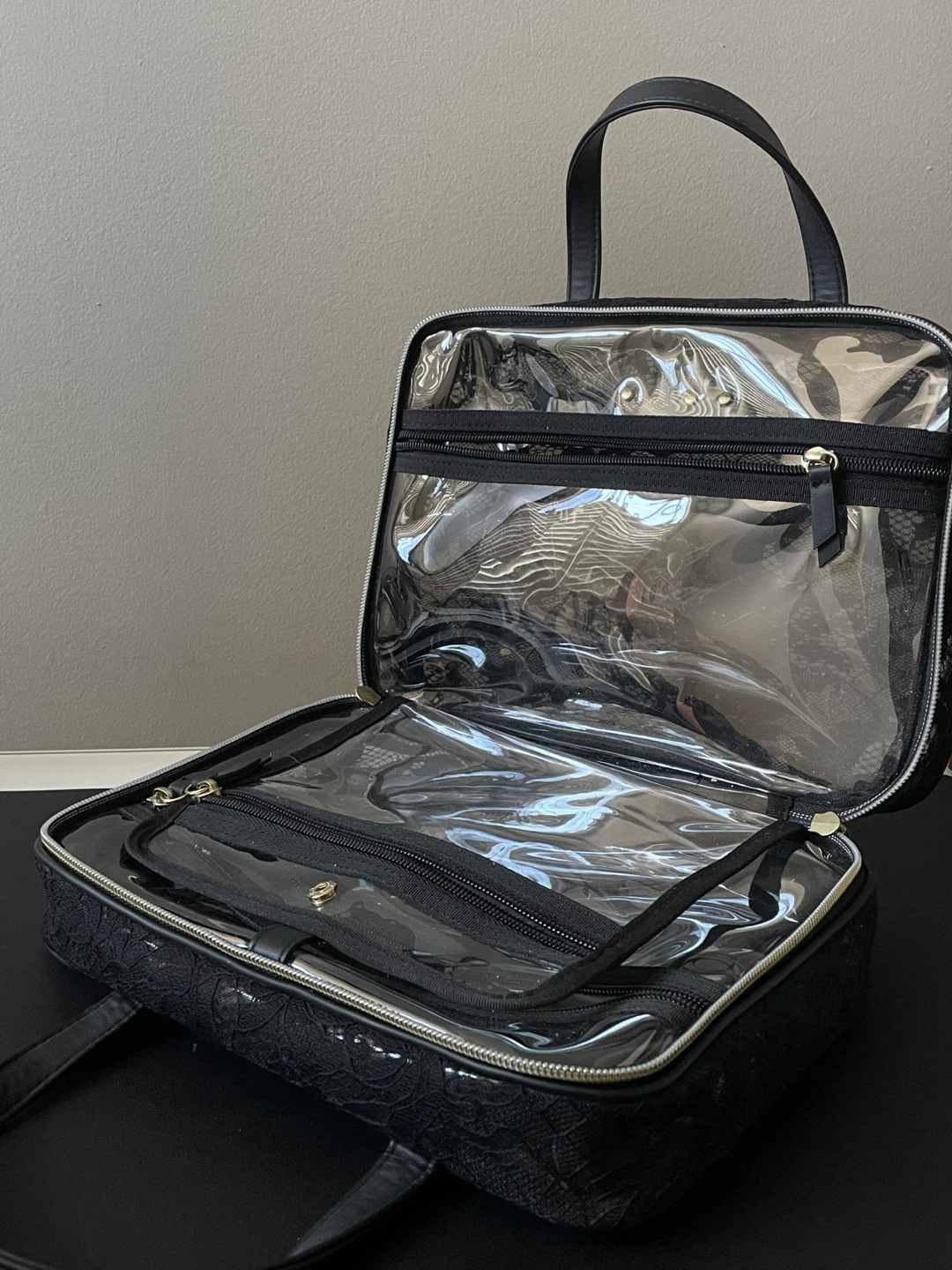 This Victoria's Secret black lace cosmetic bag is perfect for storing makeup and toiletries for travel or at home. It features multiple zippered compartments with ample space, including a clear PVC pouch in the centre. Been sitting pretty for a while, never used!