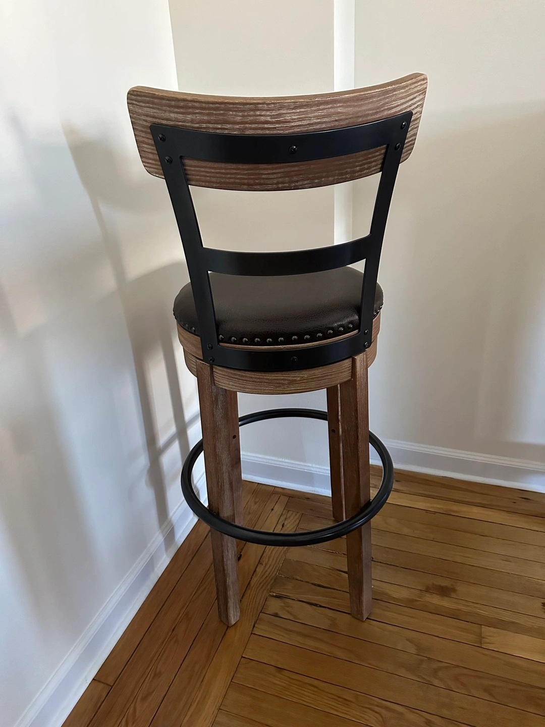 Guadeloupe Bar Height Wood Table and 4 Spinning Chairs