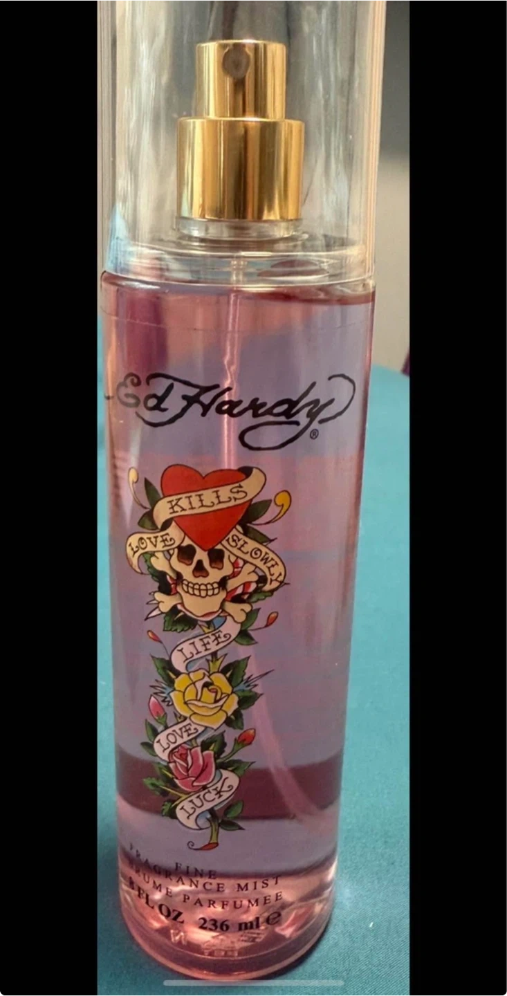 It only used once can see on photo Ed Hardy Fine Fragrance Mist. It's a 236 ml bottle. This mist is perfect for everyday wear or special occasions!