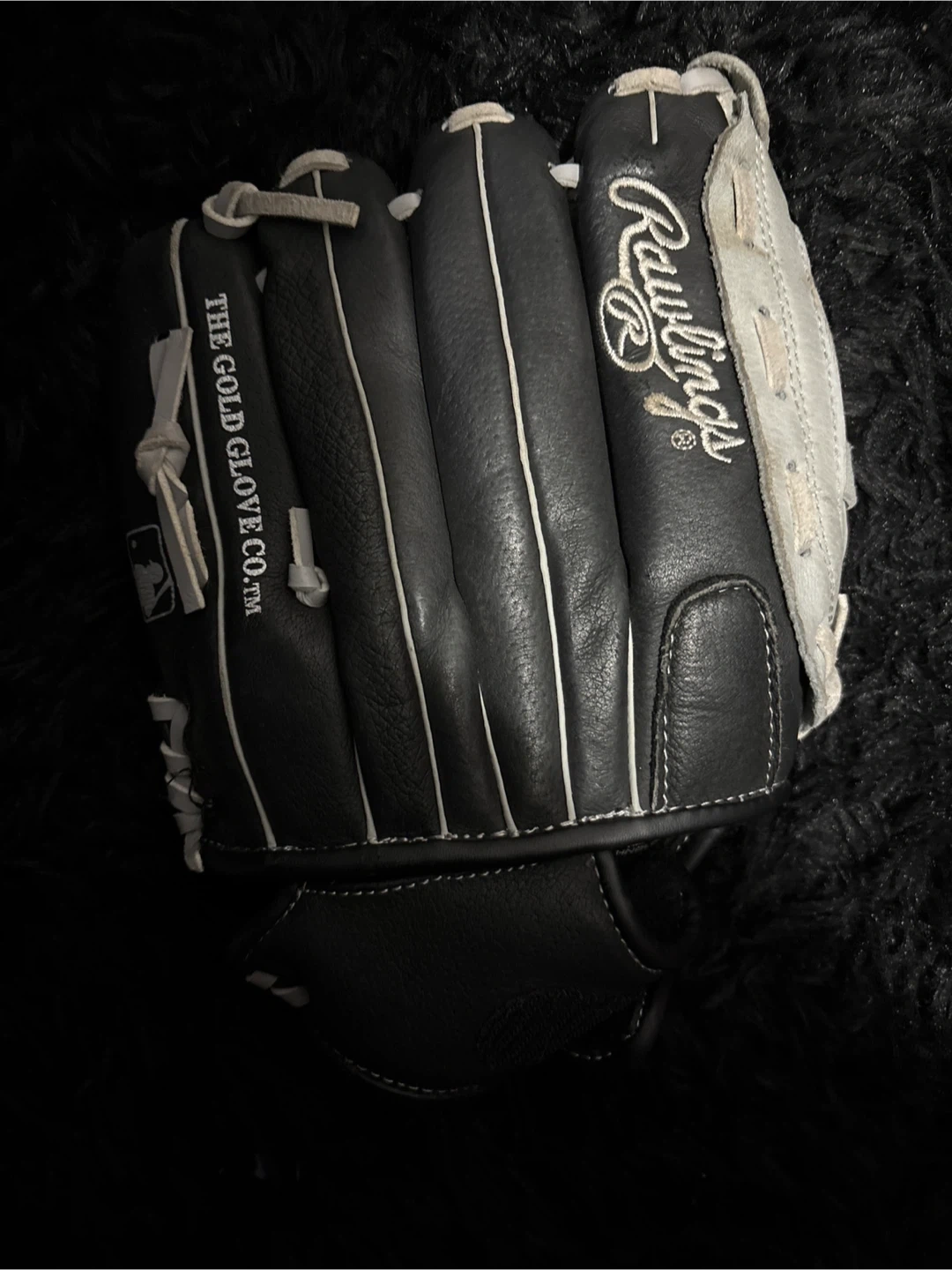 Selling a Rawlings baseball glove from The Gold Glove Co. It's a size 11 1/2 inch glove, perfect for baseball season! It is black and gray with an all-leather shell.
