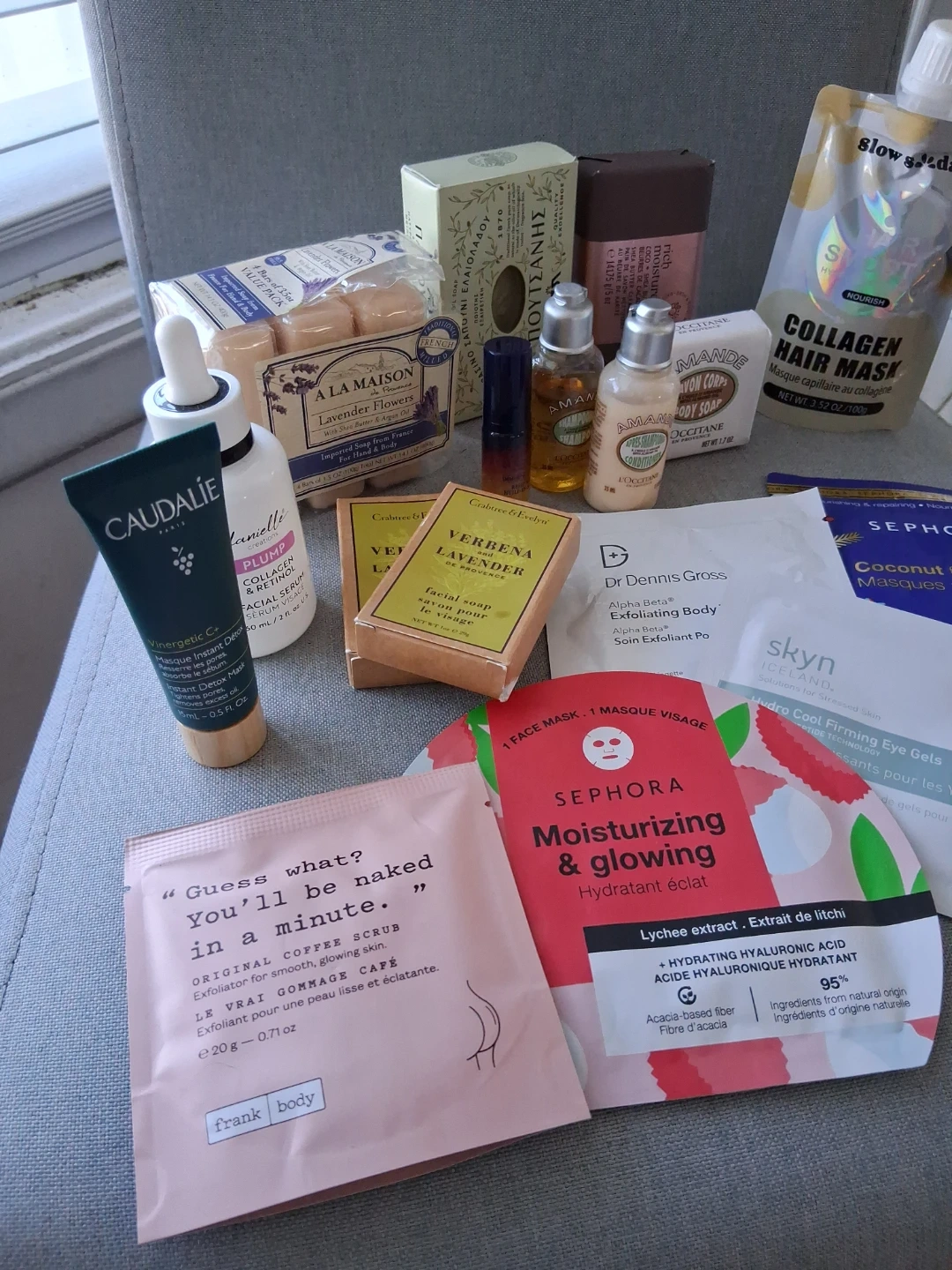 Bundle! A collection of skincare and beauty items including face masks, soaps, and lotions. Items from brands like Caudalie, Sephora, Dr. Dennis Gross, and L'Occitane are included. Great for trying out new products! Take em all for $25, or DM for specific products only for a different bundle ππ¬