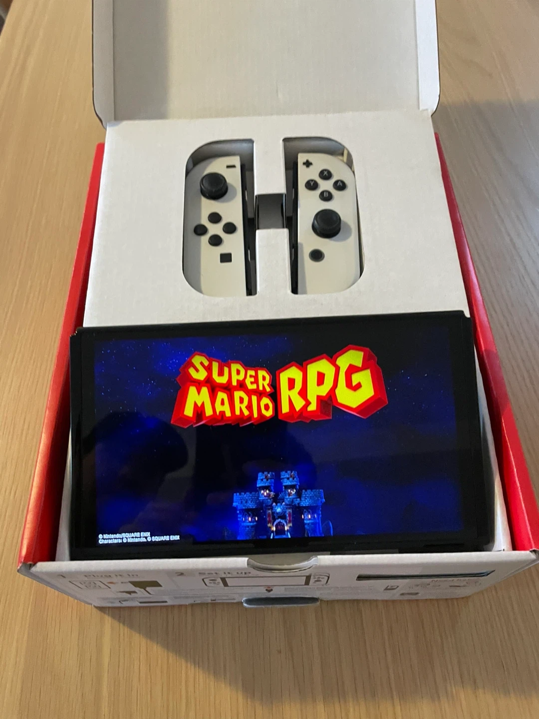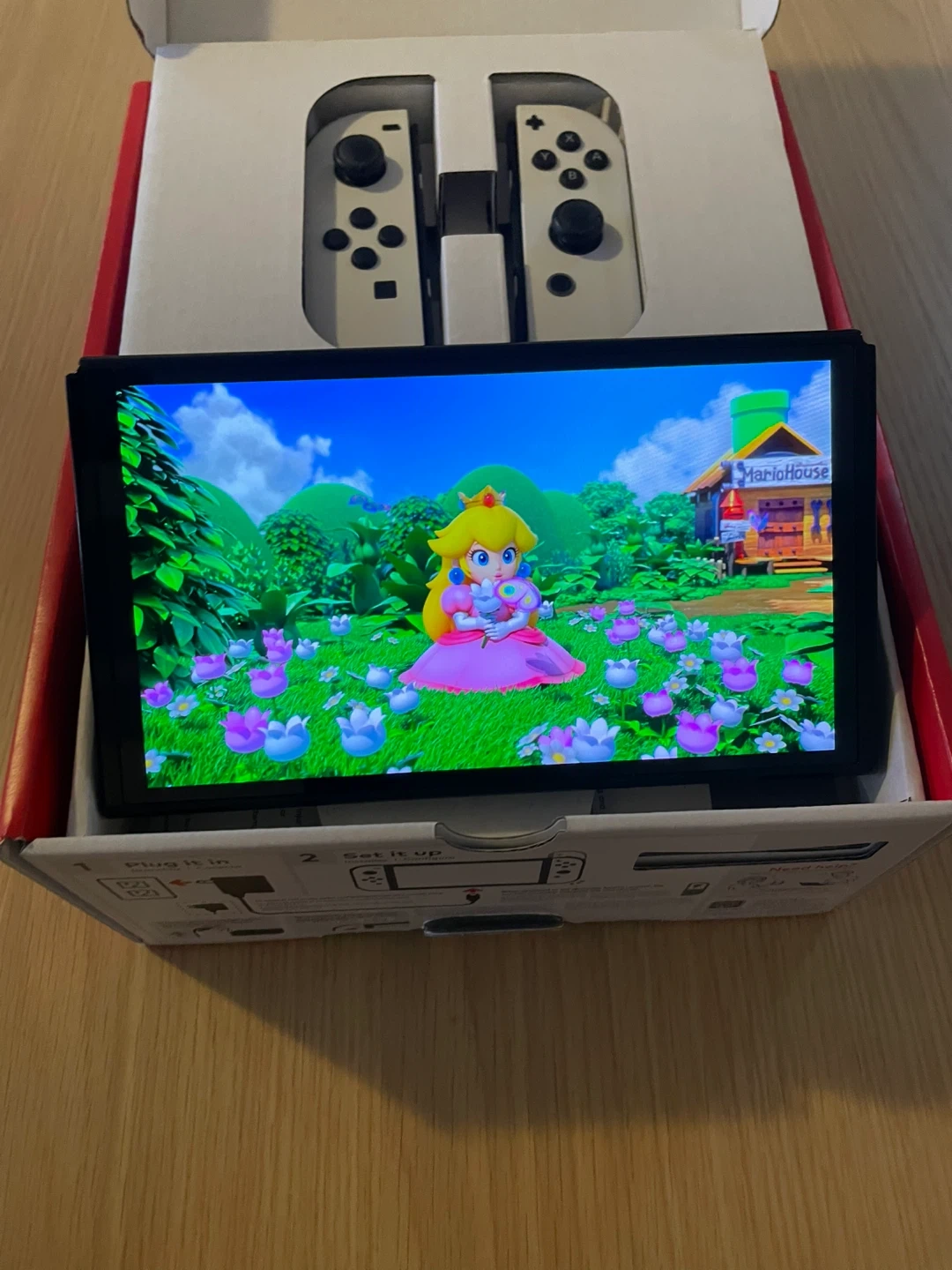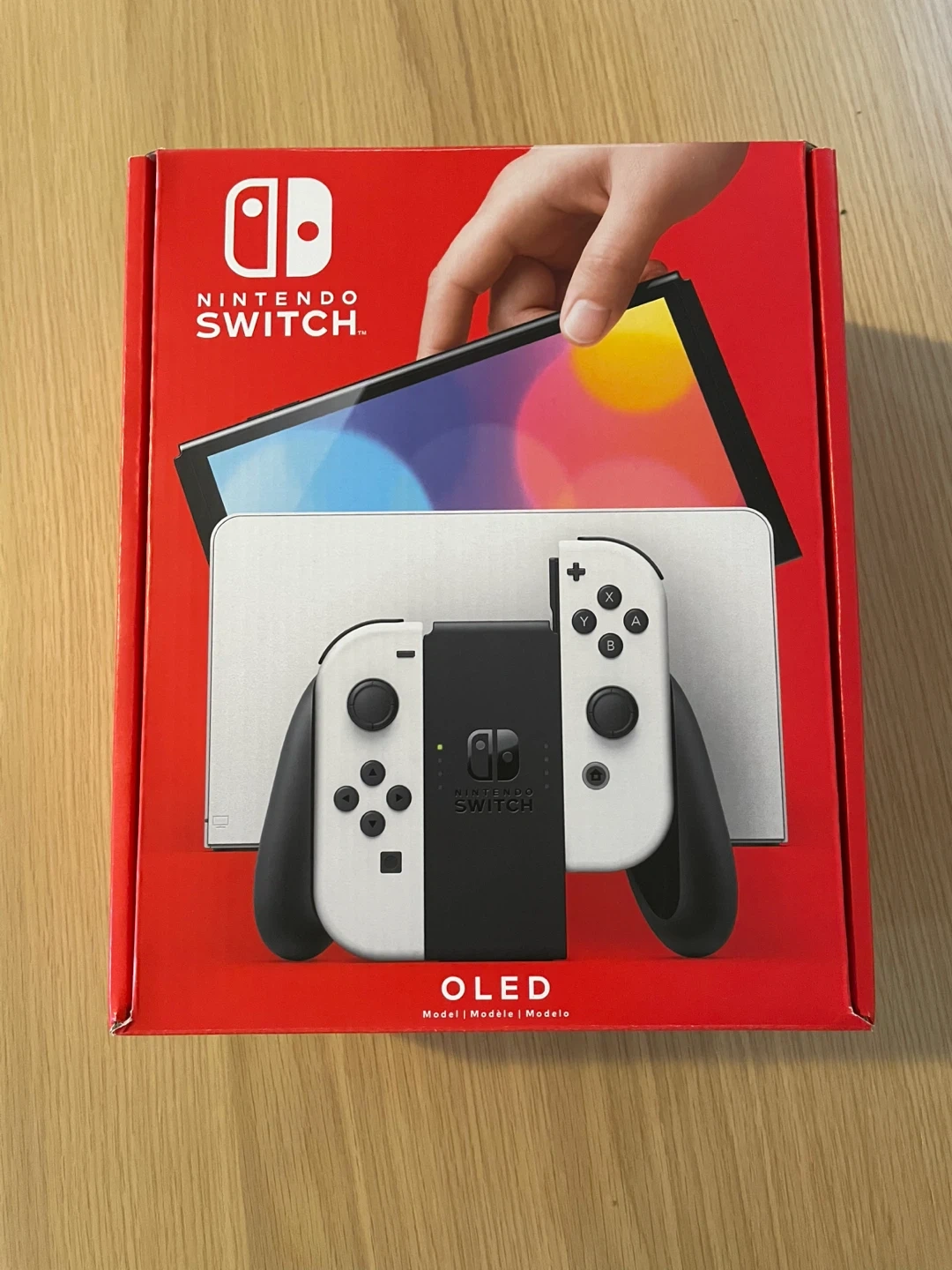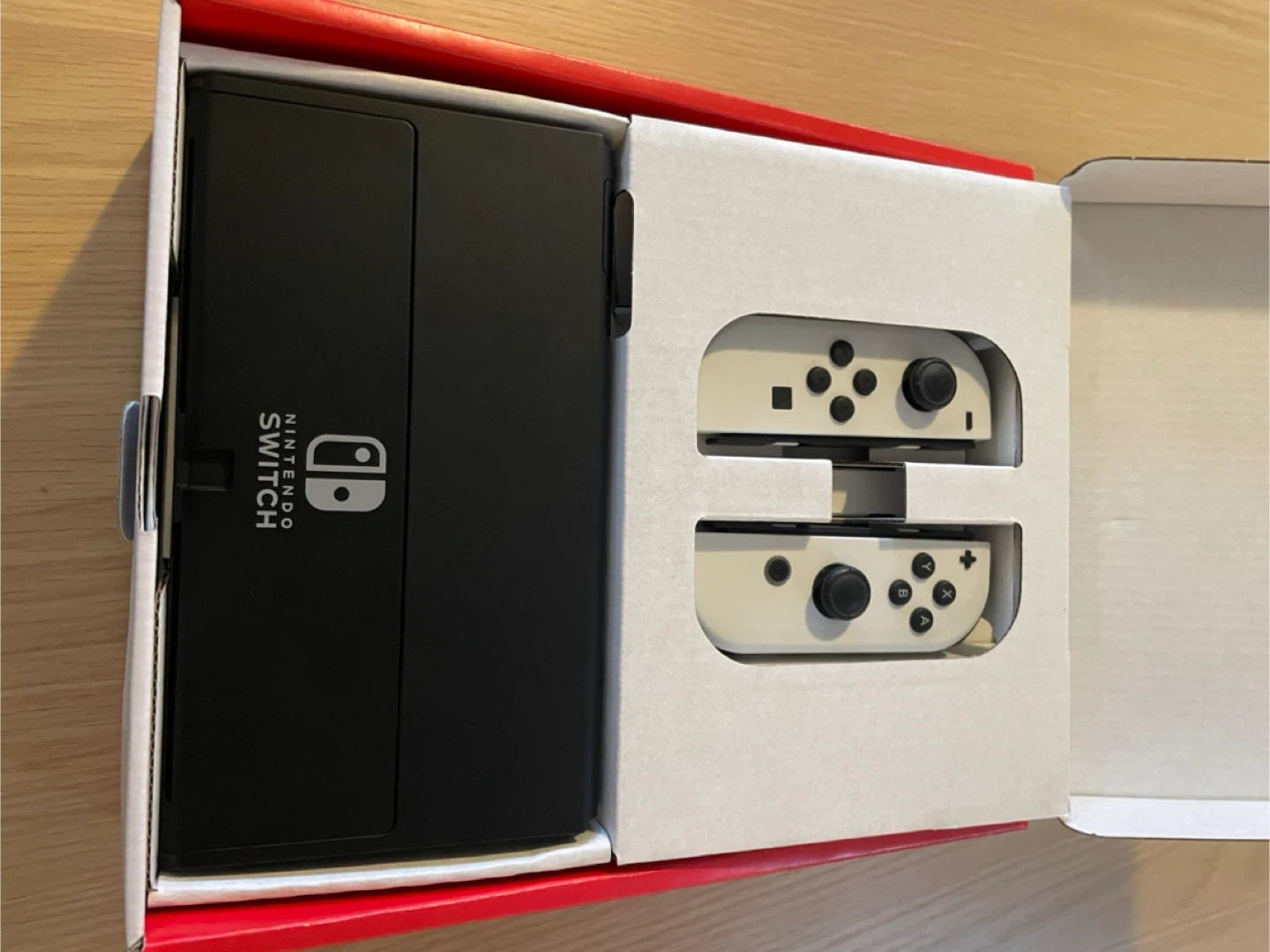 This is a Nintendo Switch OLED model in white. It's a fantastic console for gaming on the go or at home. Includes the console, Joy-Cons, and charging accessories.