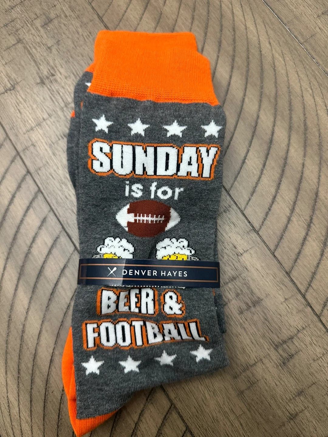 New Denver Hayes Men's Crew Socks - Grey/Orange Football Theme