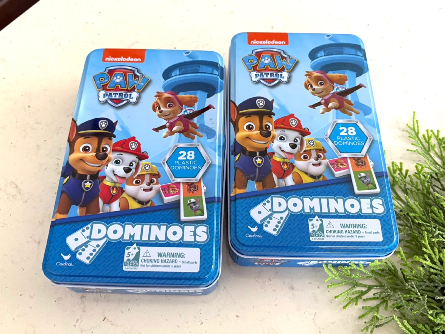 2 Sets Paw Patrol Dominoes Tin Set - 28 Plastic Dominoes