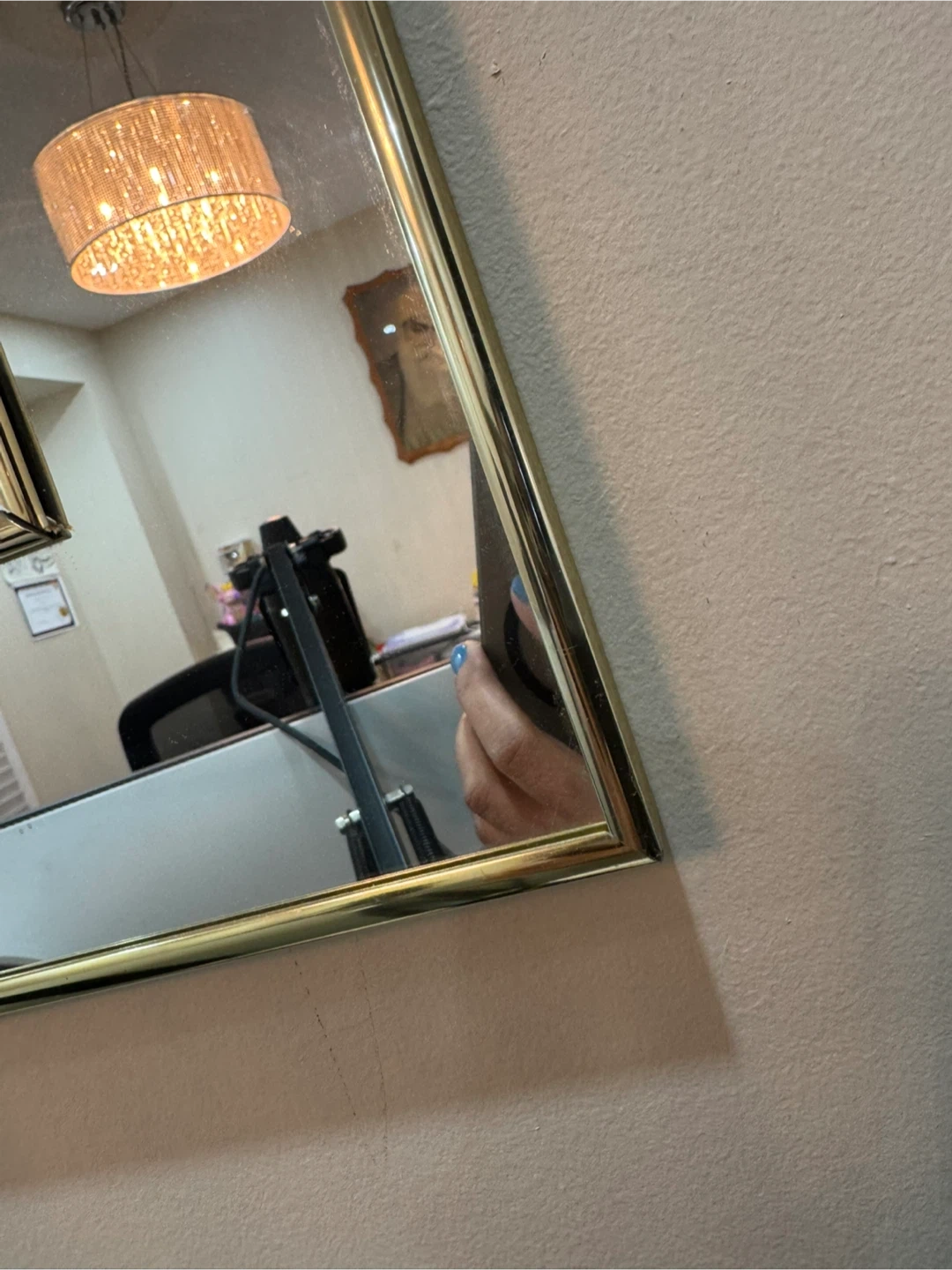 This wall mirror features a sleek gold-toned metal trim. It's a great accent piece for any room. The frame is rectangular with a double-layered design. 2x3 feet