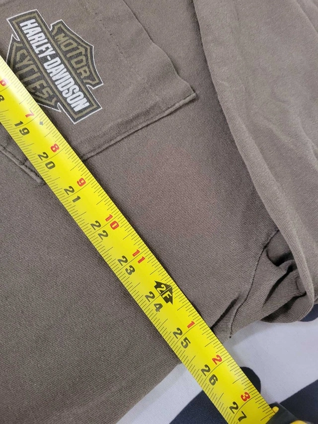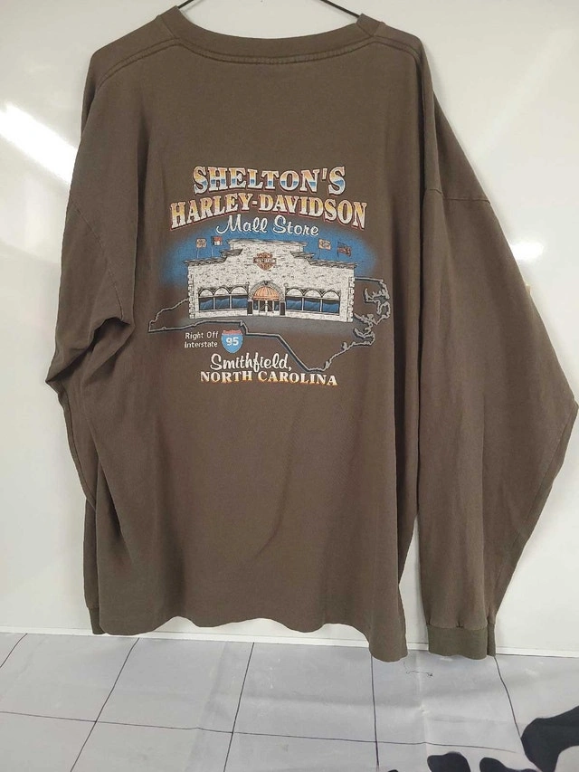 Brown Harley longsleeve with writing on the sleeve. In good condition, just a little faded. Size 2XL. Pickup in Orleans. Please check out my other 2XL listings.