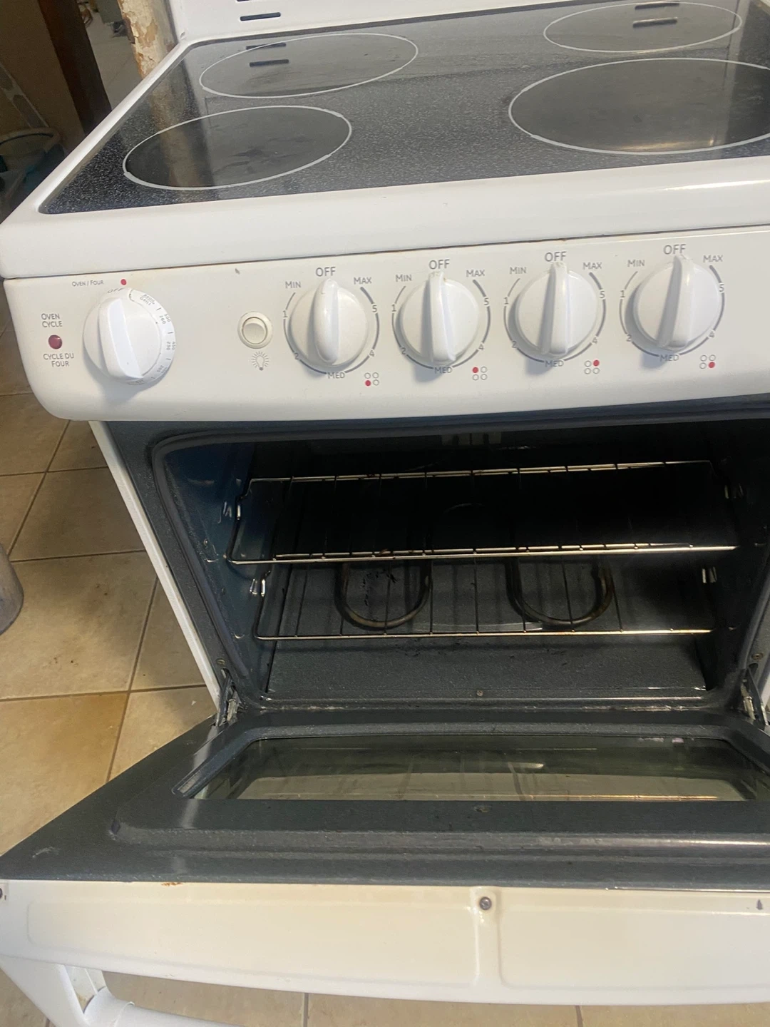 24” ELECTRIC STOVE ALL 4 BURNERS AND OVEN WORKING PERFECTLY FINE CLEAN AND READY TO GO NO ISSUES AT ALL . CAN PLUG AND SHOW YOU .