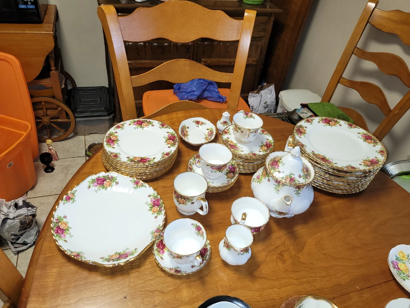 A lovely collection of vintage teacups and saucers, featuring assorted floral patterns. Some pieces are marked 'Royal Albert'. This set would be wonderful for hosting afternoon tea parties. It's a charming addition to any kitchen or display cabinet!