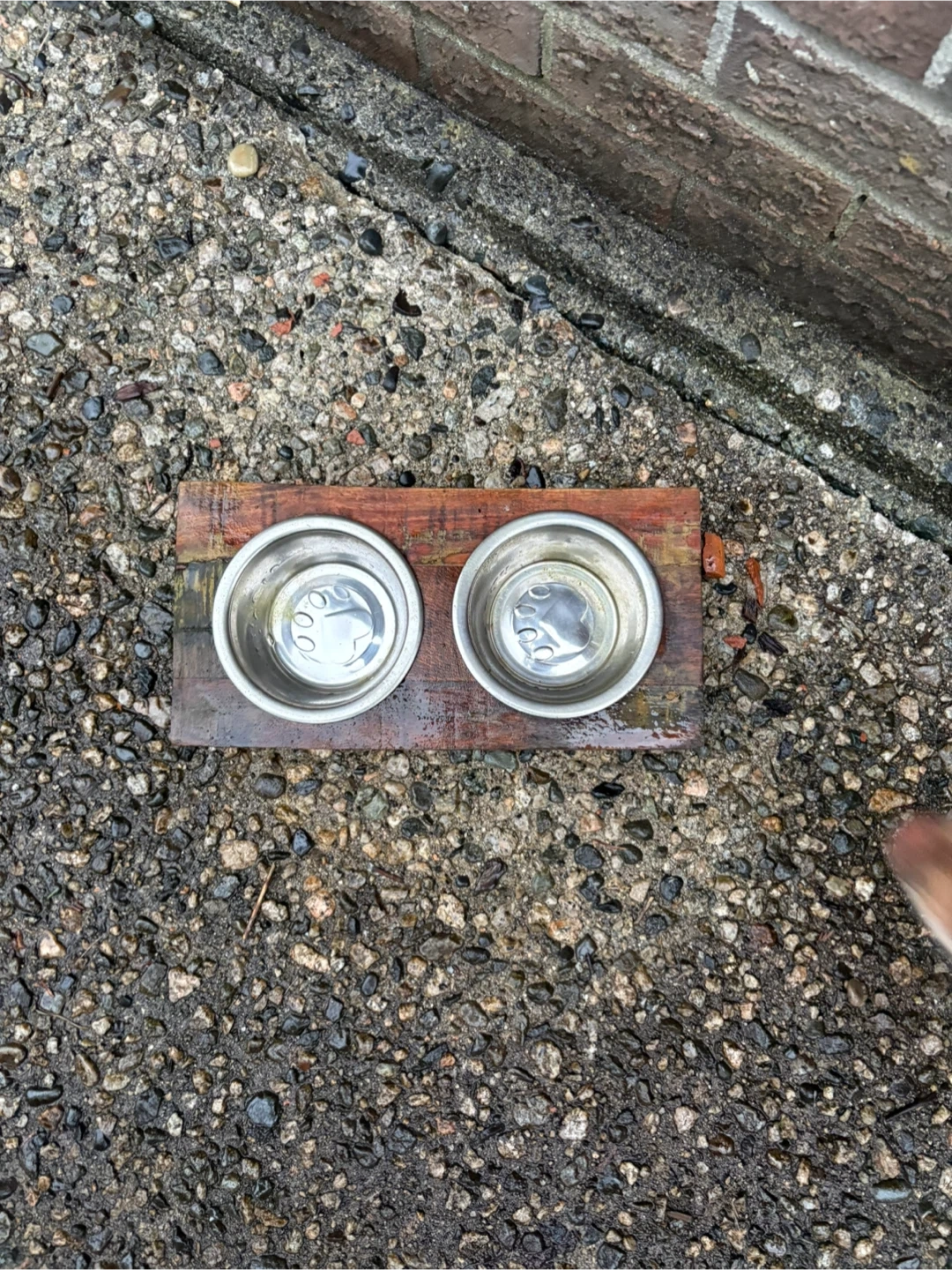 This is a double dog bowl feeder stand. It includes two stainless steel bowls set in a wooden base. These bowls are great for holding both food and water for your pets.