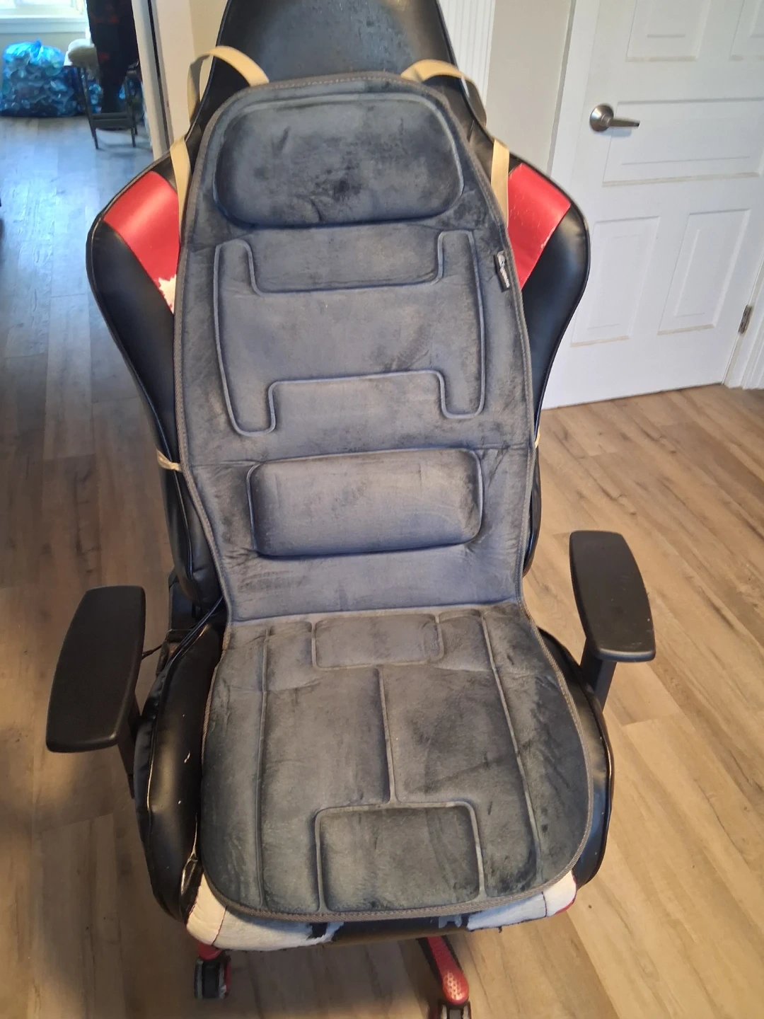 This Snailax SL-126 massage cushion offers multiple massage modes and heat options for neck, upper back, lower back, and seat. It features adjustable intensity levels and comes with its original box. It's great for adding a Shiatsu massage experience to your favourite chair!
