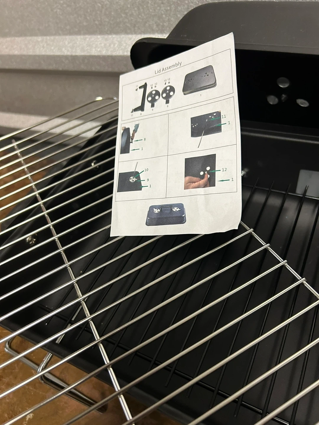 This is a portable charcoal grill, perfect for tailgating or camping. It's made of durable metal and includes a lid with air vents. The grill is black and comes with a removable grate.