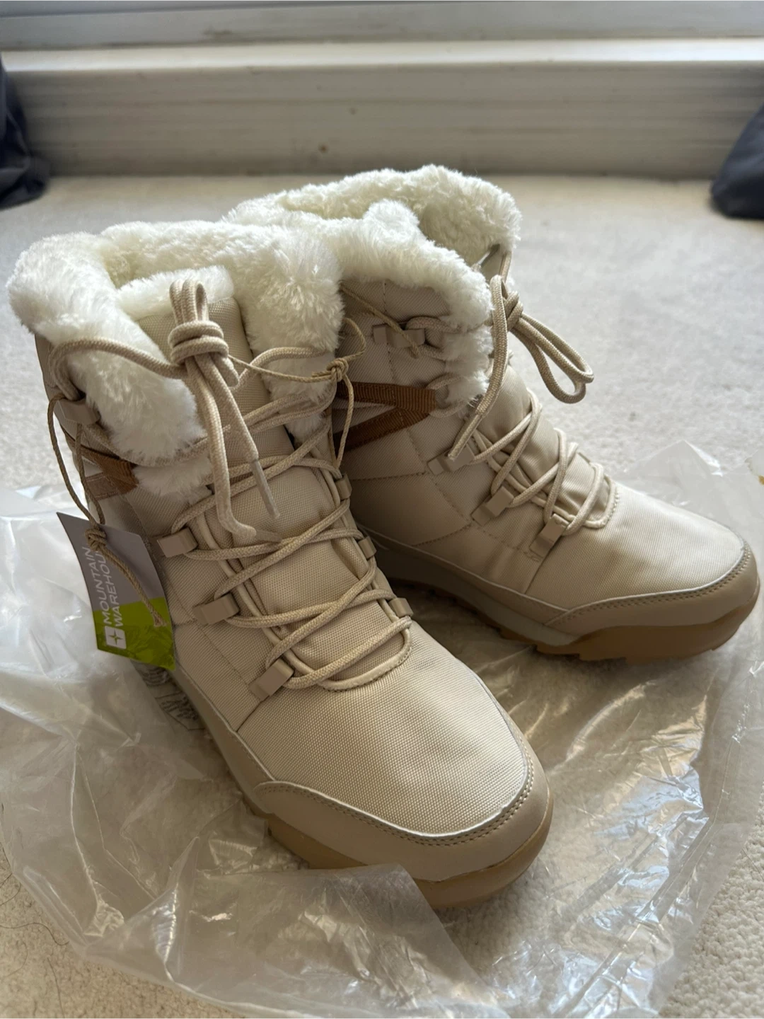 Keep your feet warm and dry this winter with these beige waterproof boots from Mountain Warehouse. They're built for comfort and durability. These boots are great for snowy or wet conditions!