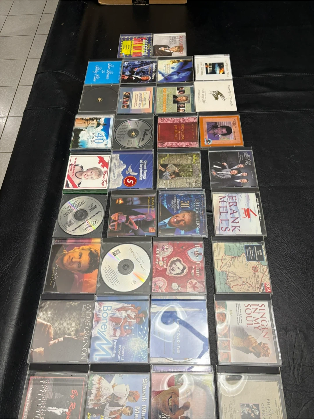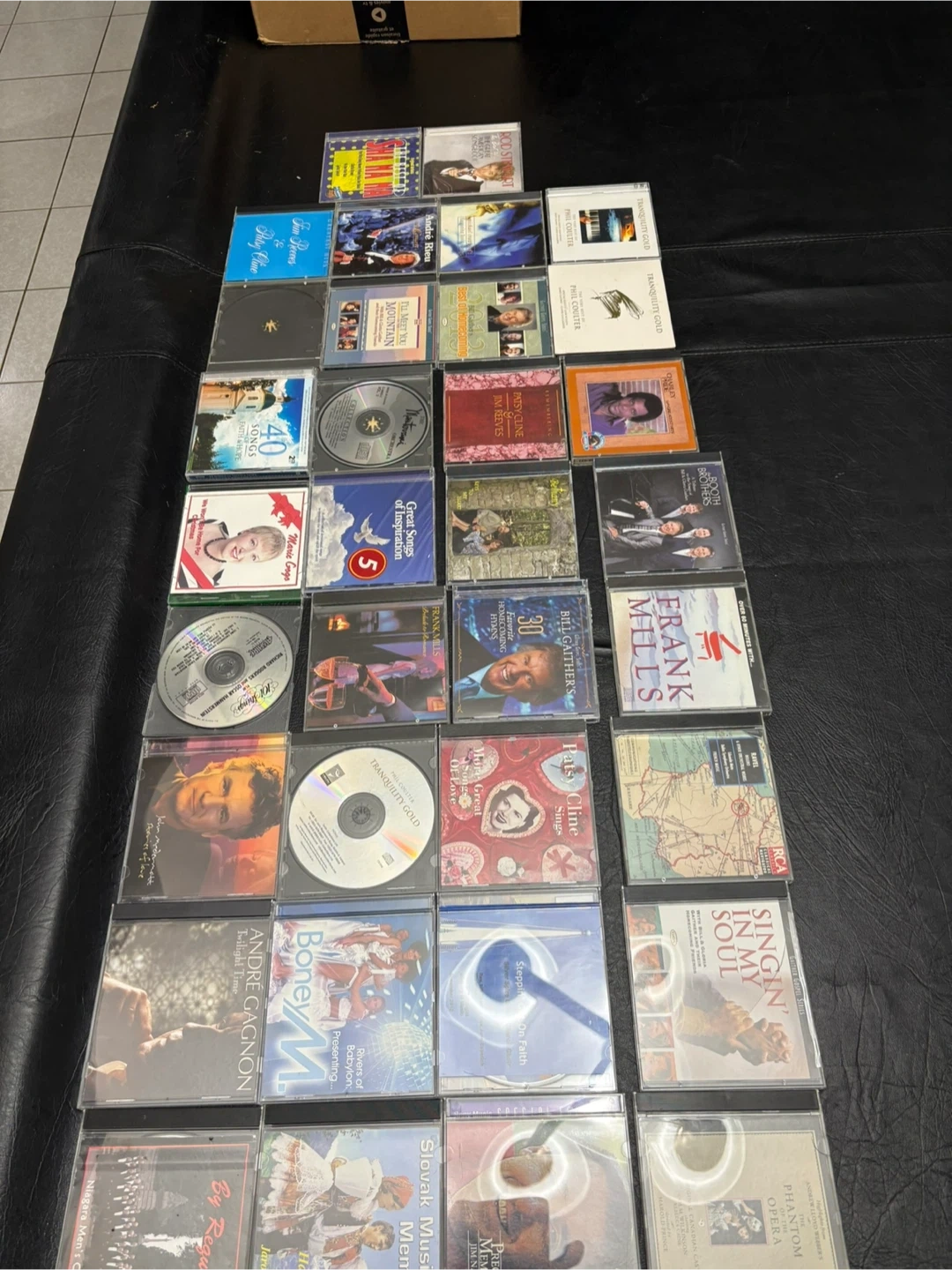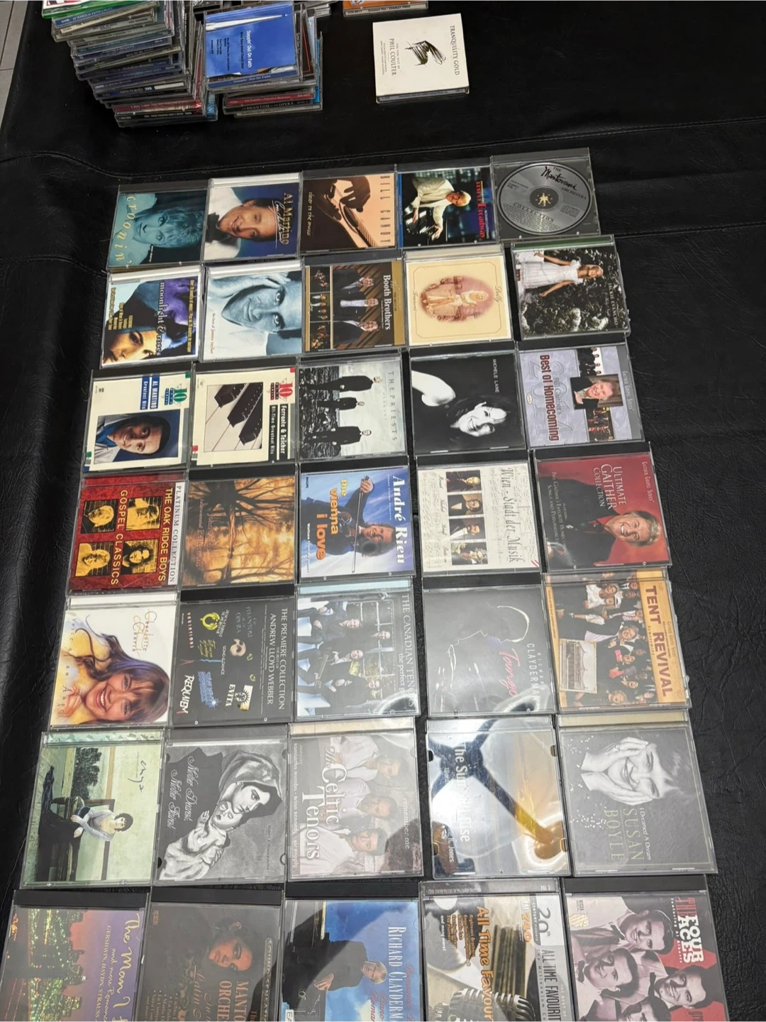 A selection of music compact discs featuring a range of artists and genres. Includes various albums from artists like Andre Gagnon and Susan Boyle. These discs are in standard CD format.
