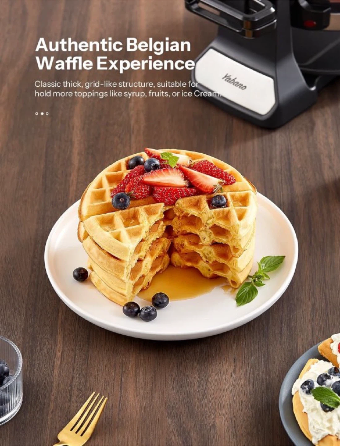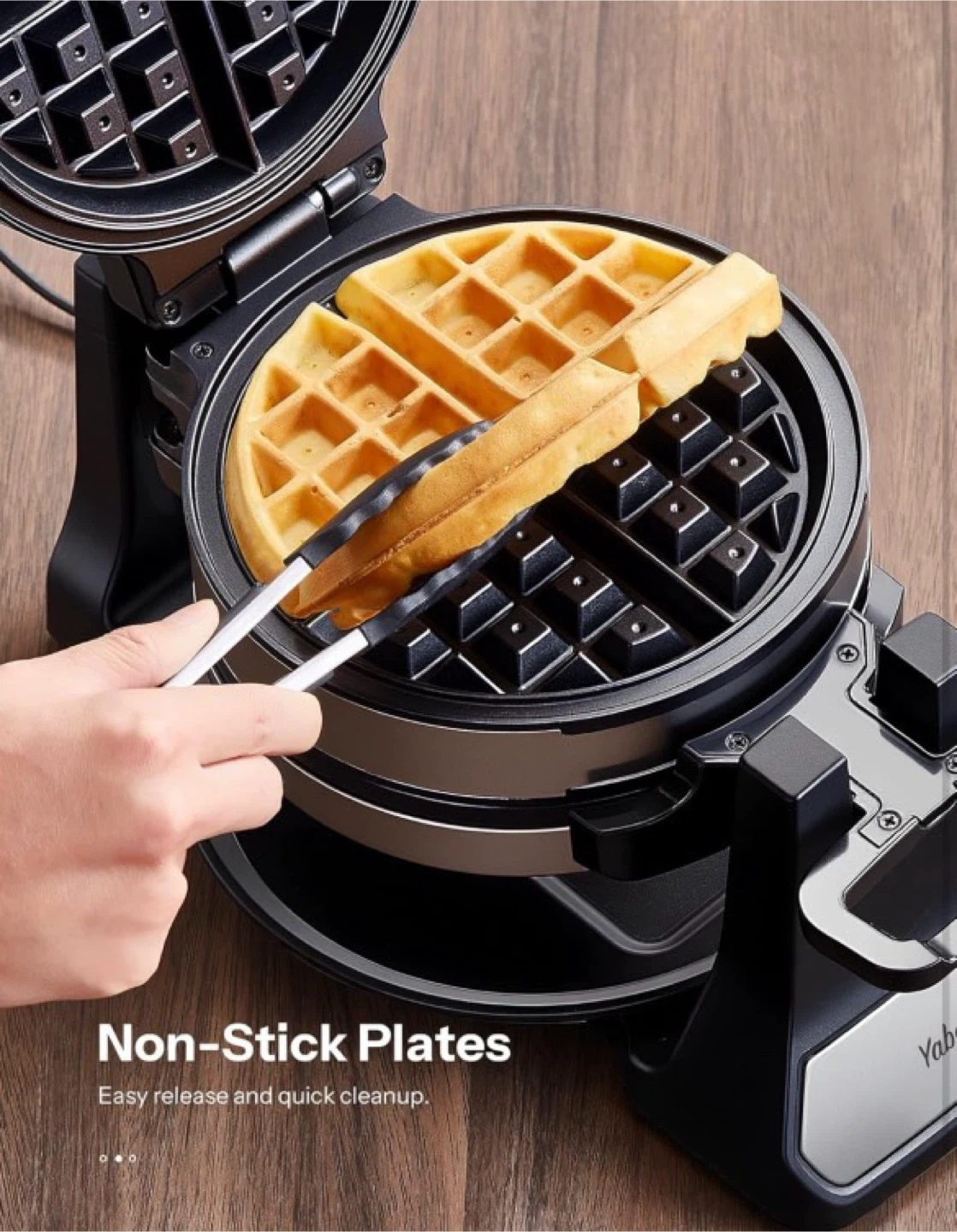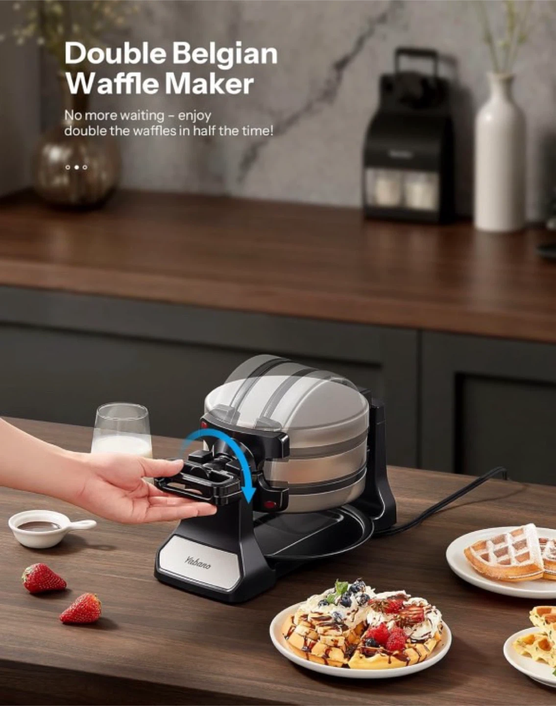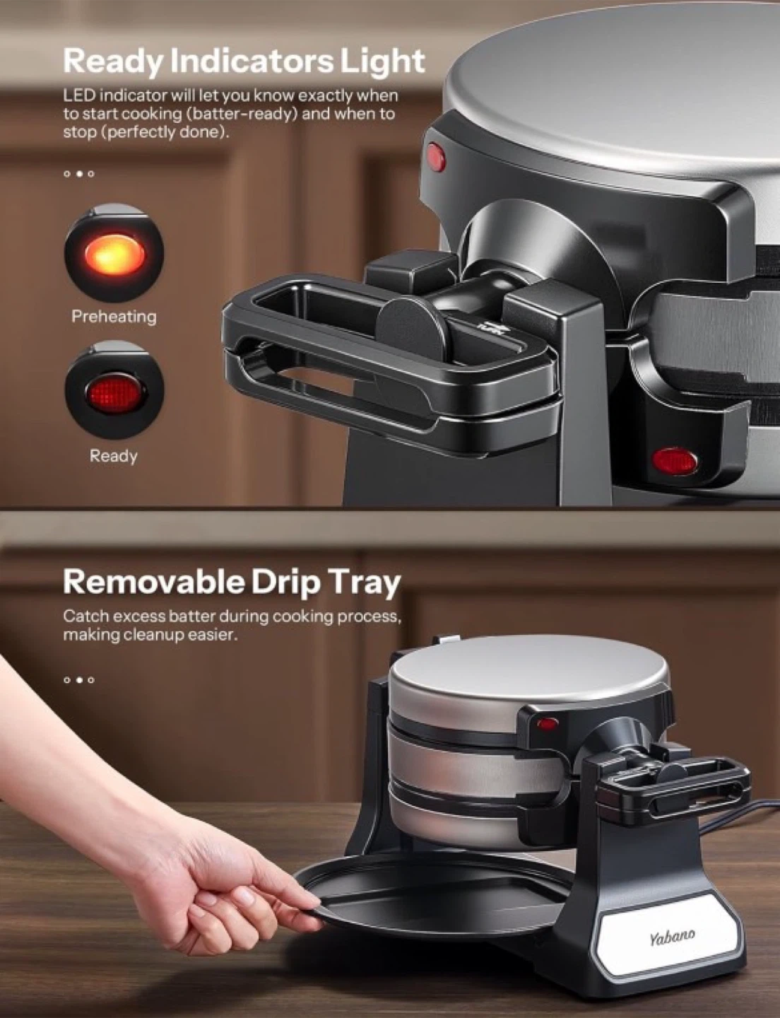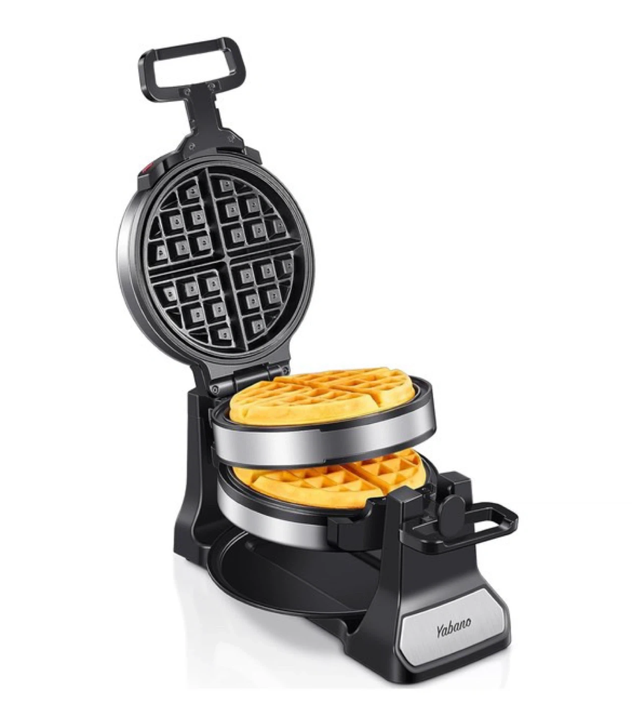 10Belgian Waffle Maker with Double Waffle Plate, Yabano Rotating Waffle Iron with Nonstick Plates, Removable Drip Tray and Cool Touch Handles, Gaufrier Belge, Stainless Steel