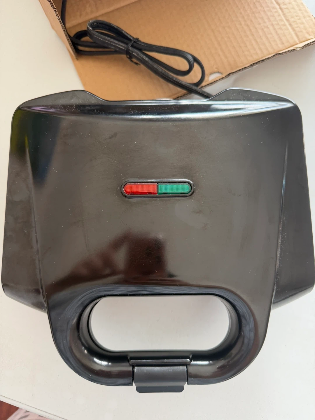 67Selling a waffle maker in black. It's in great condition and ready to make some delicious waffles for you and your family! Comes with the original box