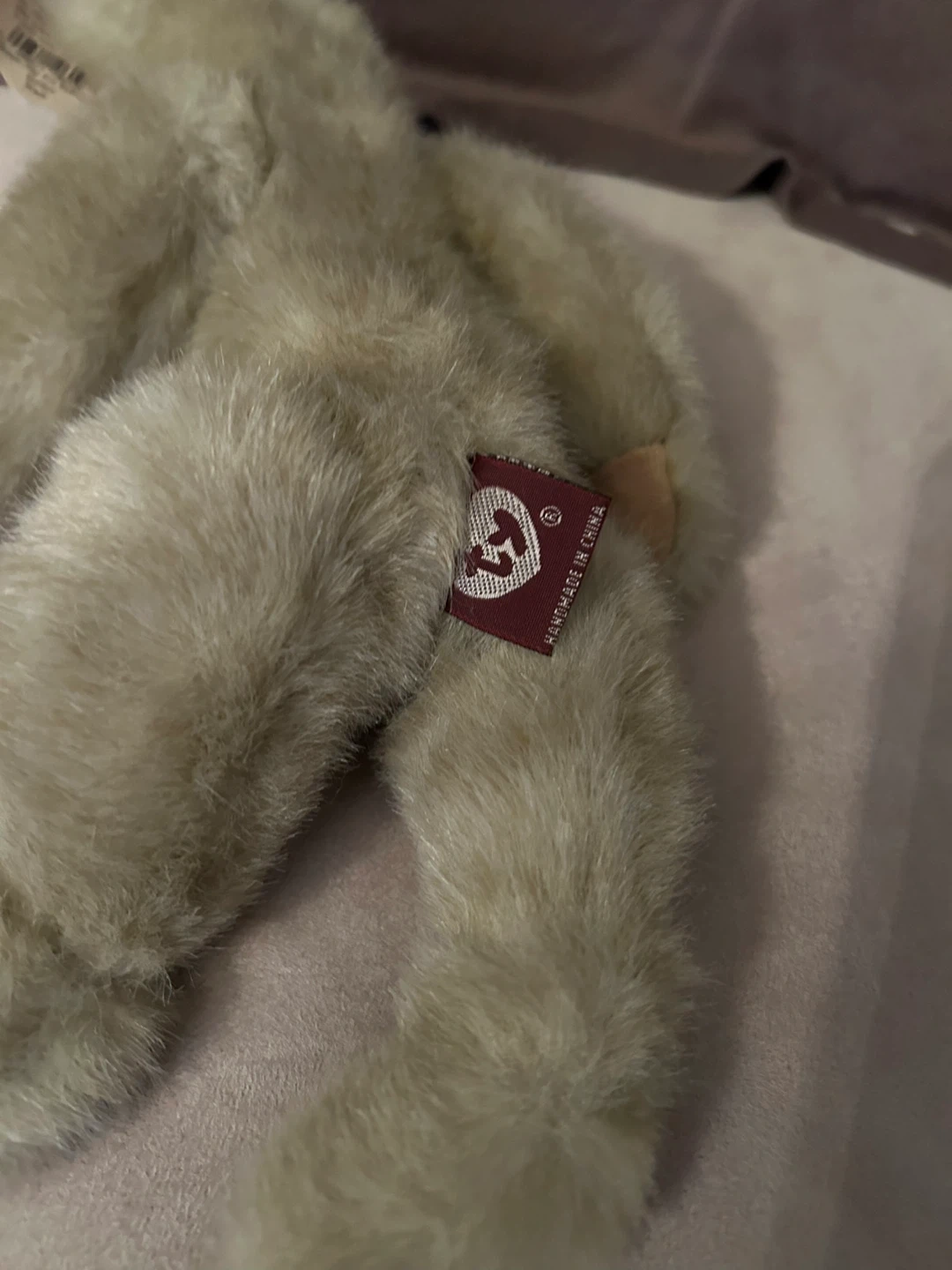 This is a Ty Collectibles Cassie bear, style number 6028, designed by Nola Hart. It's a plush teddy bear with a blue bow. This collectible is approximately 11”.tags attached.Moveable arms and legs