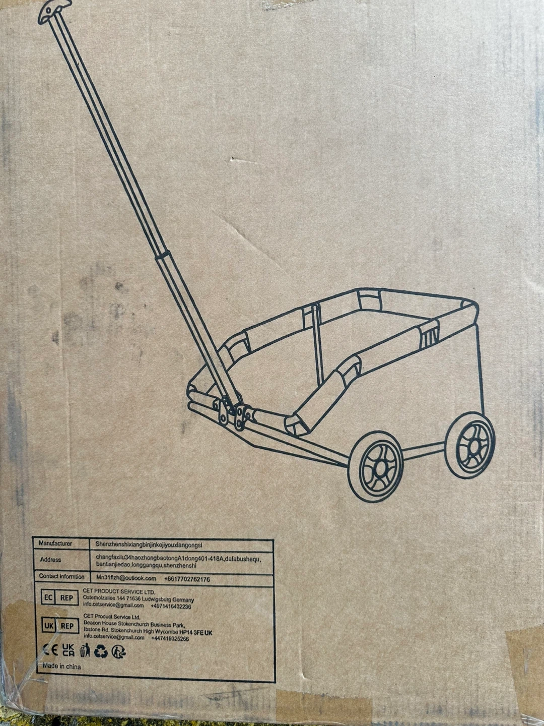 Selling a brand new in box wagon, perfect for hauling groceries or taking the kids/pets to the park! The box includes contact information for the manufacturer and UK/EC representatives
