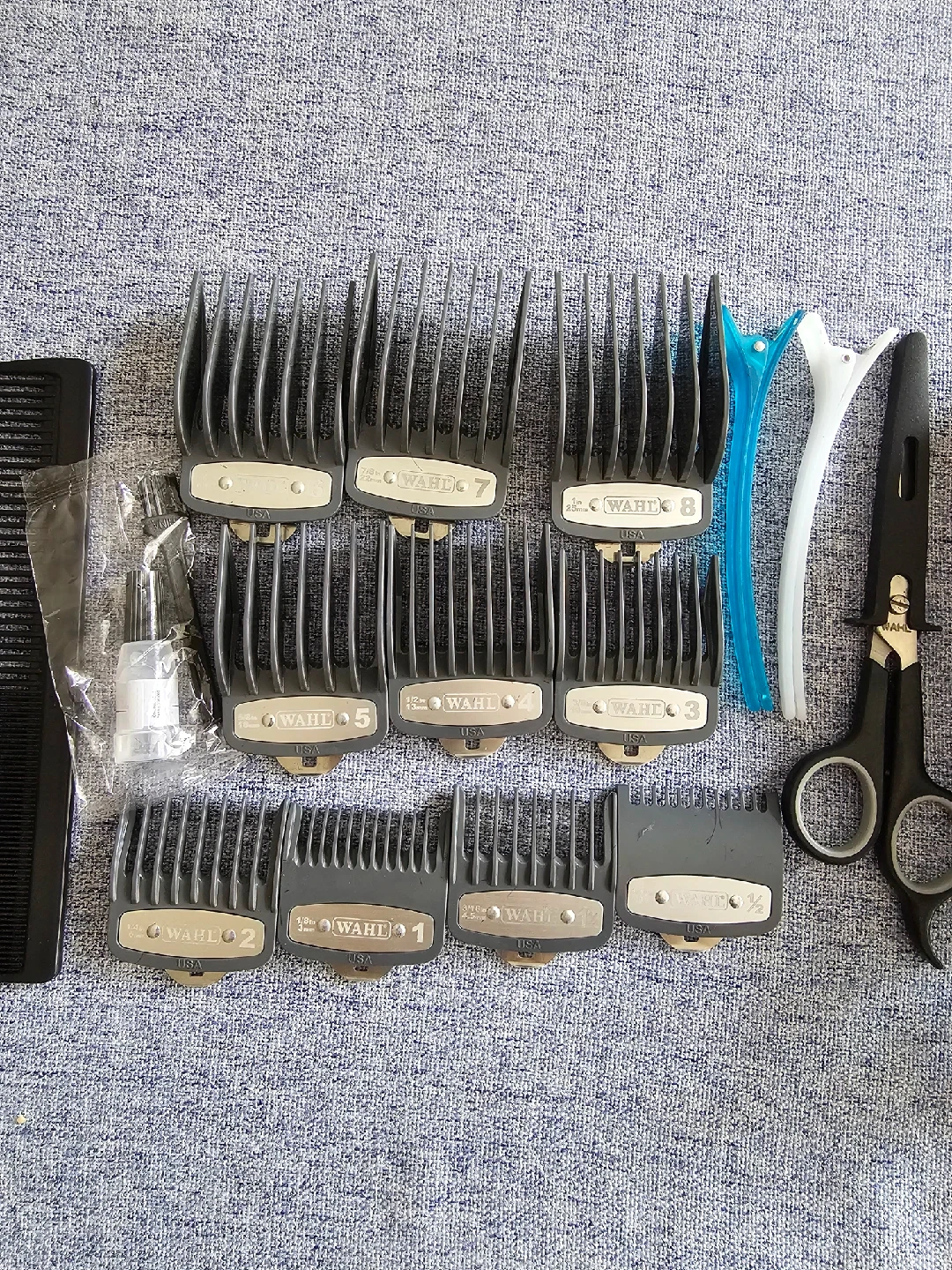 60✨ Wahl Hair Clipper Set – Like New! ✨ Purchased from Amazon and used only 3 times — it’s in excellent, almost new condition. All original parts and accessories are included and perfectly complete (guards #½ to #8, scissors, comb, cleaning brush, etc.). I’m selling it at a great price because I’ll be returning to Korea soon. If you’ve been looking for a reliable clipper set that works like new, this is a great deal!