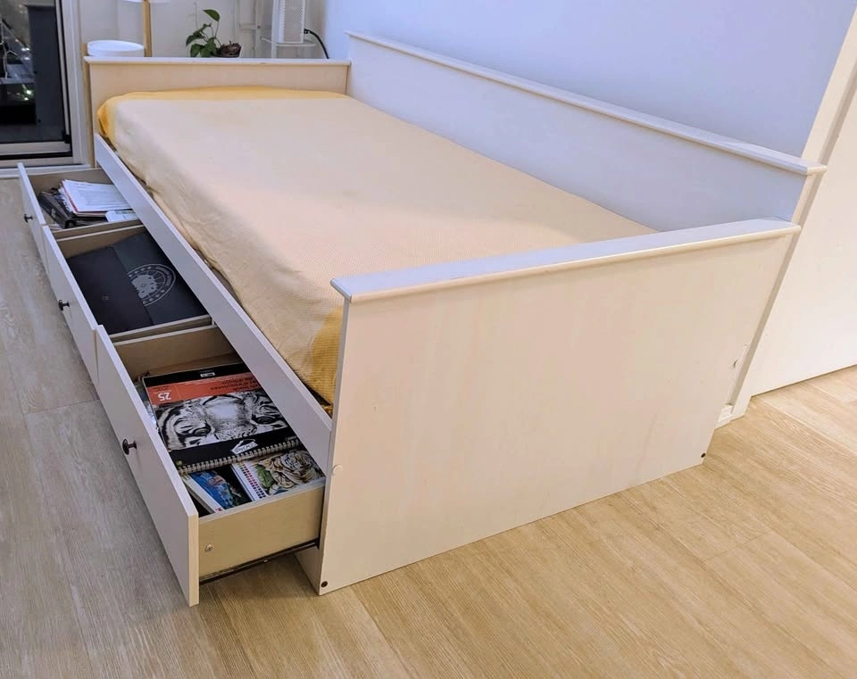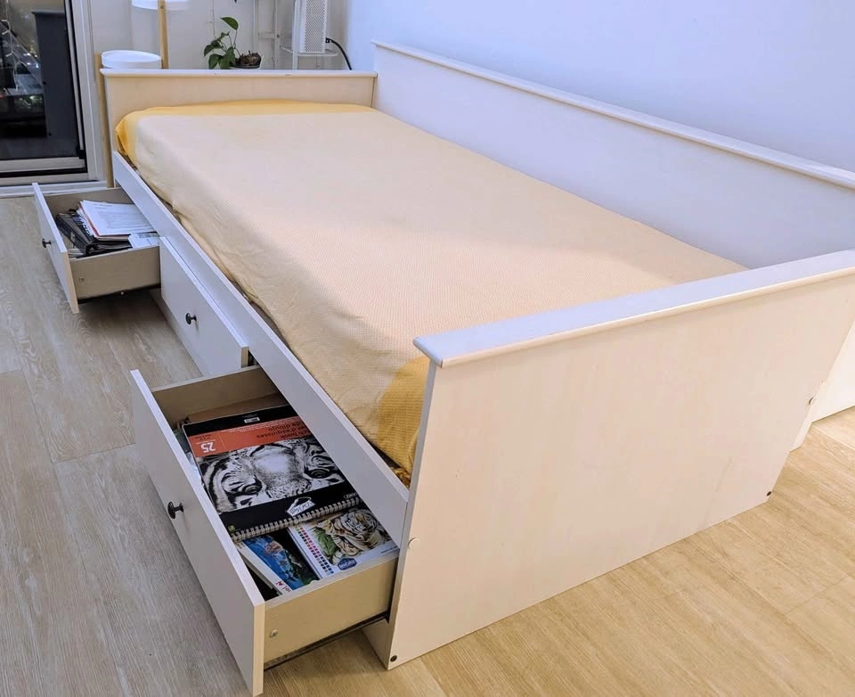 Original Wayfair twin bed frame with ample storage in excellent condition. You can also purchase the mattress for an extra $50. Please note, you will need two people to handle the bed frame.