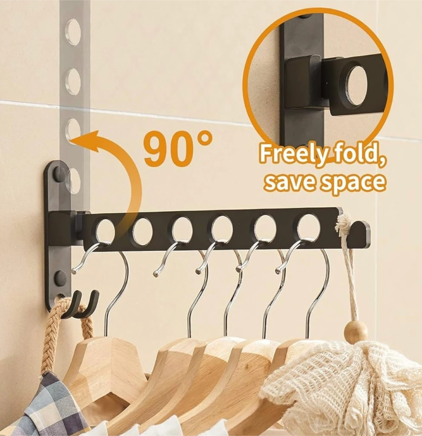 Wall Mounted Foldable Clothes Drying Rack - Black
