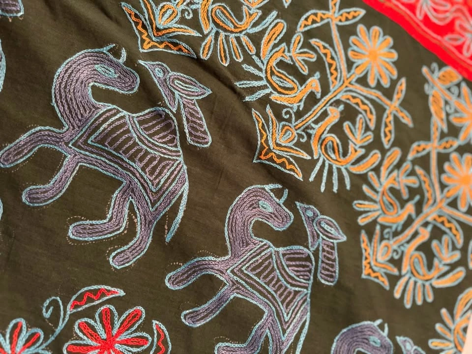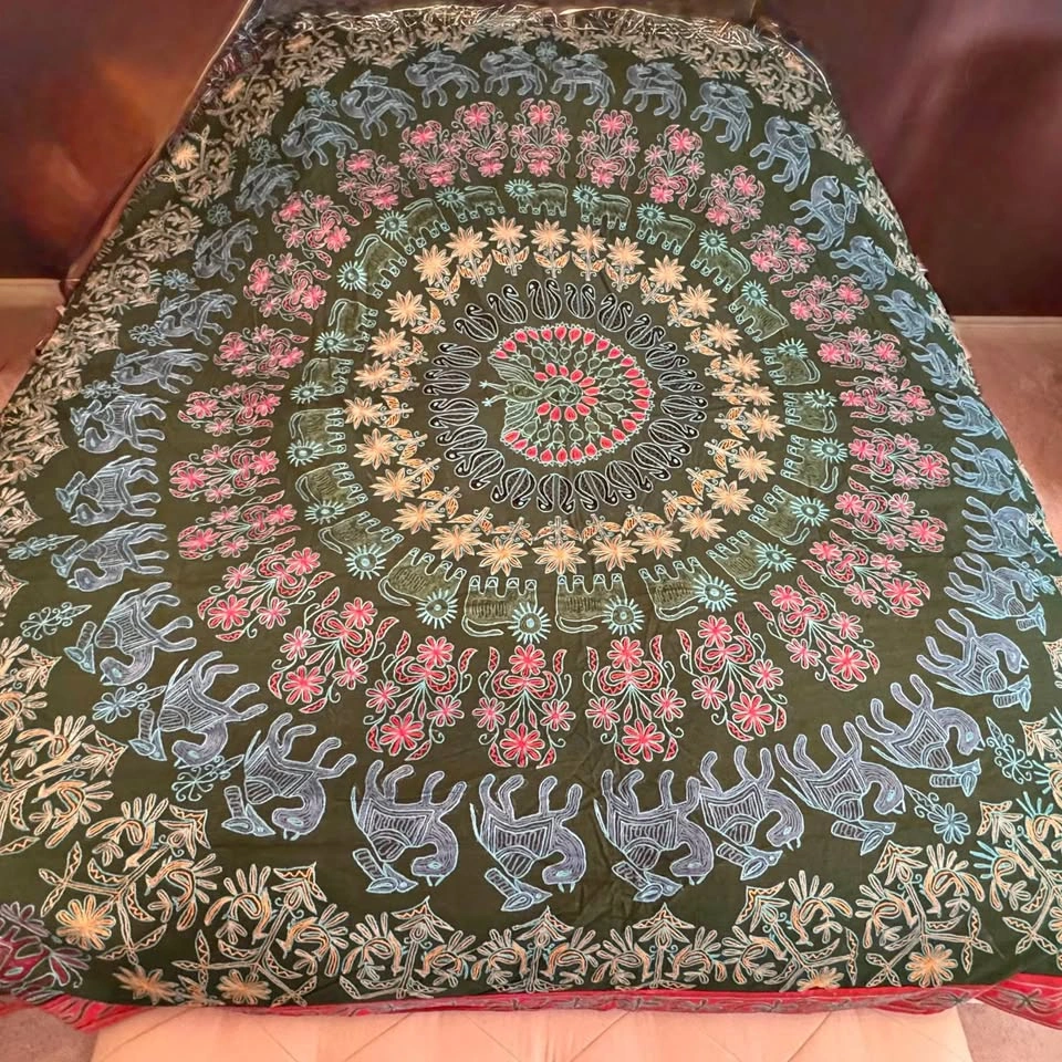 90” X 95” tapestry with detailed embroidery. Good as a wall decor or as a bedspread.