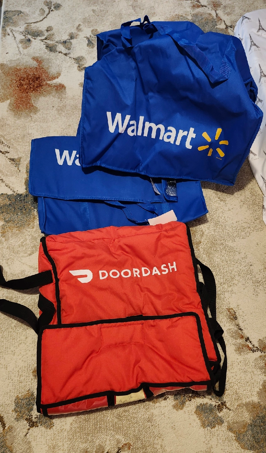 Selling 3 insulated bags, including some from Walmart and DoorDash. They're perfect for drivers who work with UberEats DoorDash or SkipTheDishes, keeping groceries or deliveries hot or cold! $25 each. willing to negotiate price