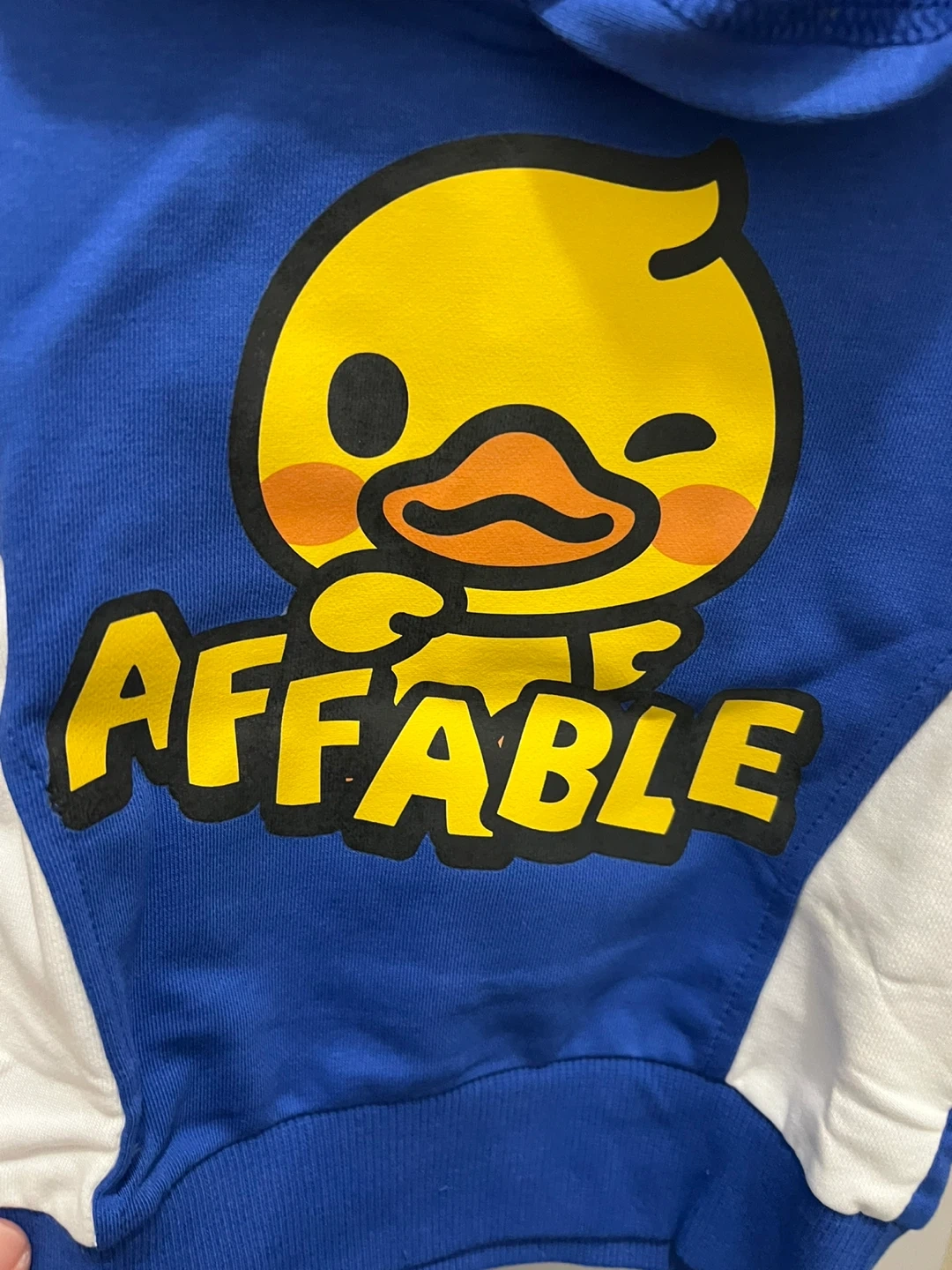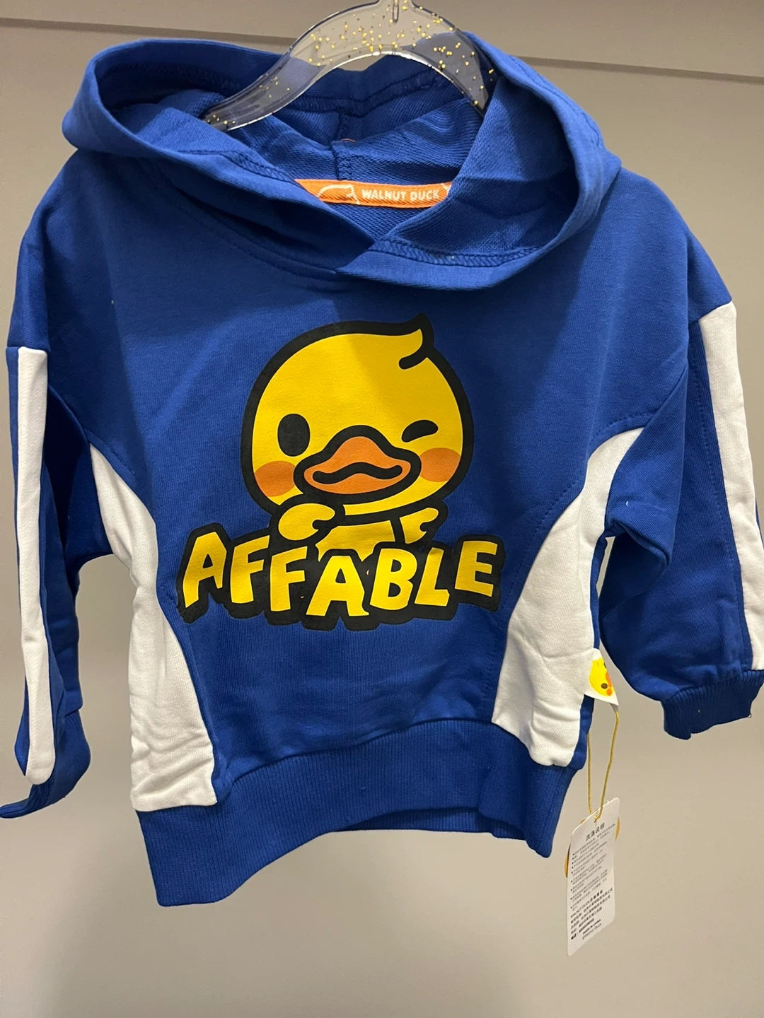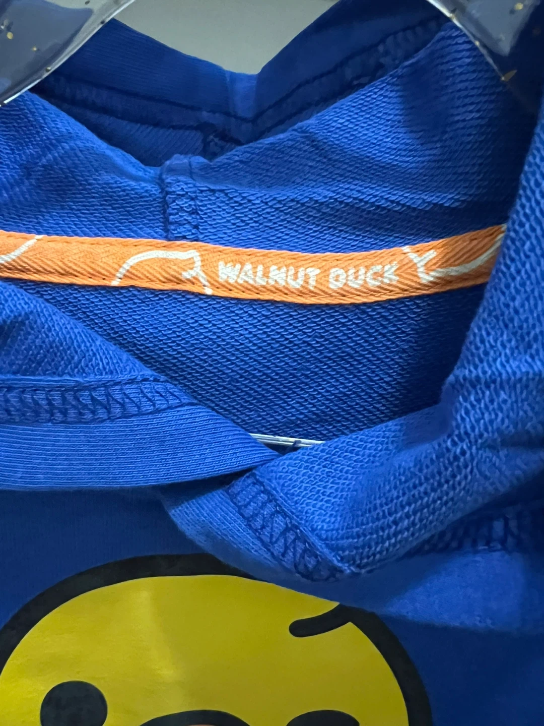 83Super cute blue hoodie from Walnut Duck! It features a fun duck design and white accents. Size 90, perfect for your little one. In great condition!