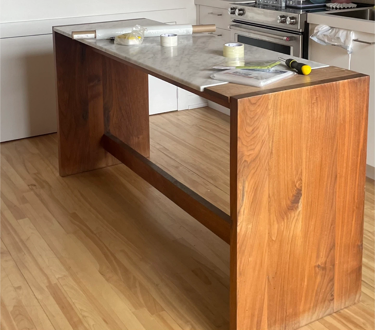 217Pick up before Sunday October 26 It will no longer be available after that date. Custom Walnut & Marble Counter Table/Island/Desk Measurements: 72in l x 24in w x 36in h Original cost $6,000+ Solid Walnut *Regular wear on the walnut Carrara Marble *Regular wear on the marble It can be used as a kitchen island, dining table, work surface / desk. The marble sits on top of the walnut base (removable). The walnut base is one piece.
