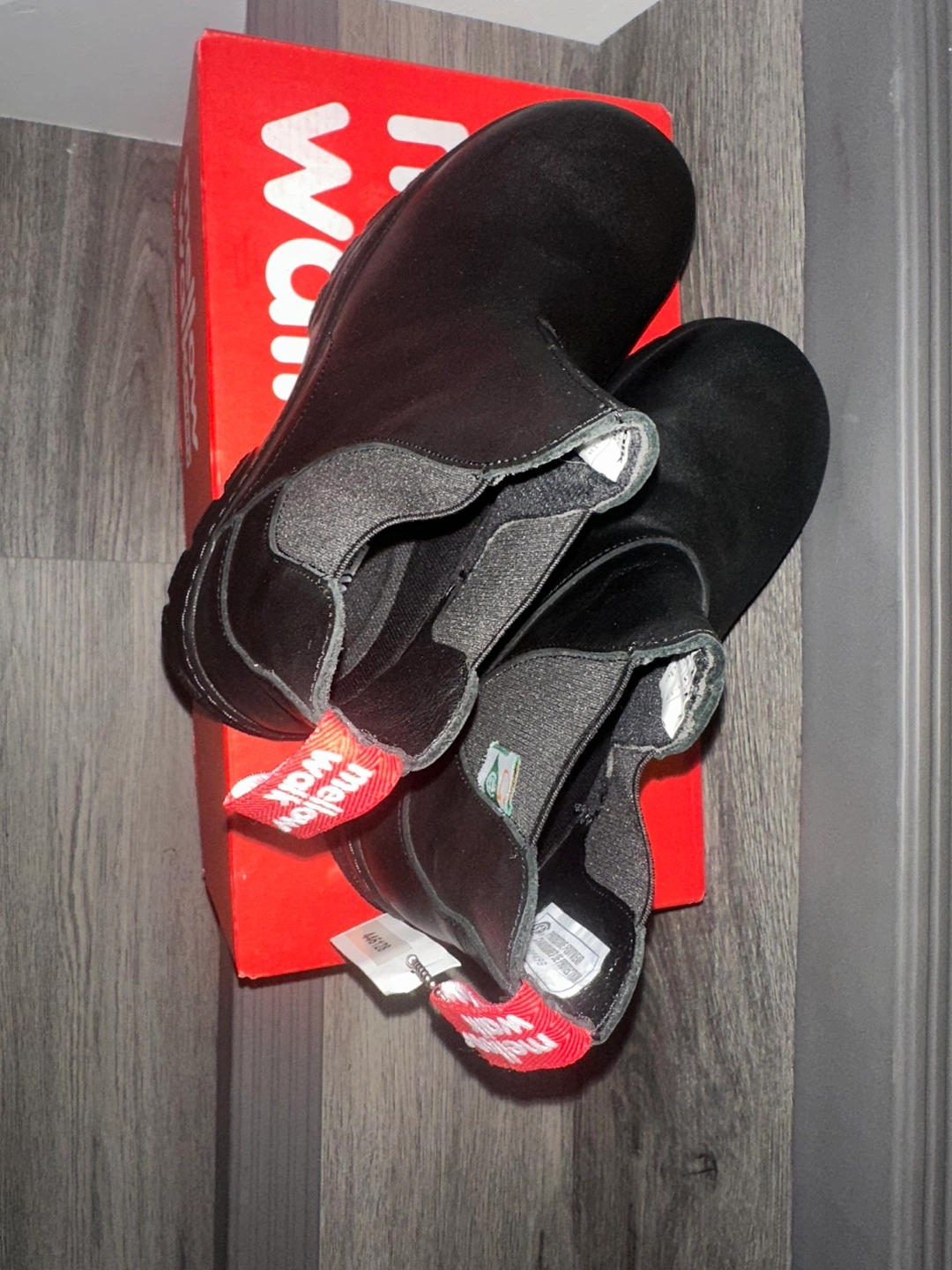 These are a pair of Walnut Melbourne Chelsea boots in black. They are in great condition and come with the original box. Perfect for everyday wear!