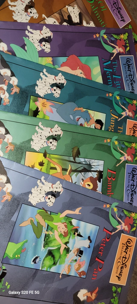 33Five vintage Walt Disney Treasure Chest books. Features classic Disney characters including Dalmatians, Ariel, Tarzan, Bambi and Peter Pan. Great for collectors or young readers. will not answer to phone calls but will answer to text messages or messages on here 3068800560