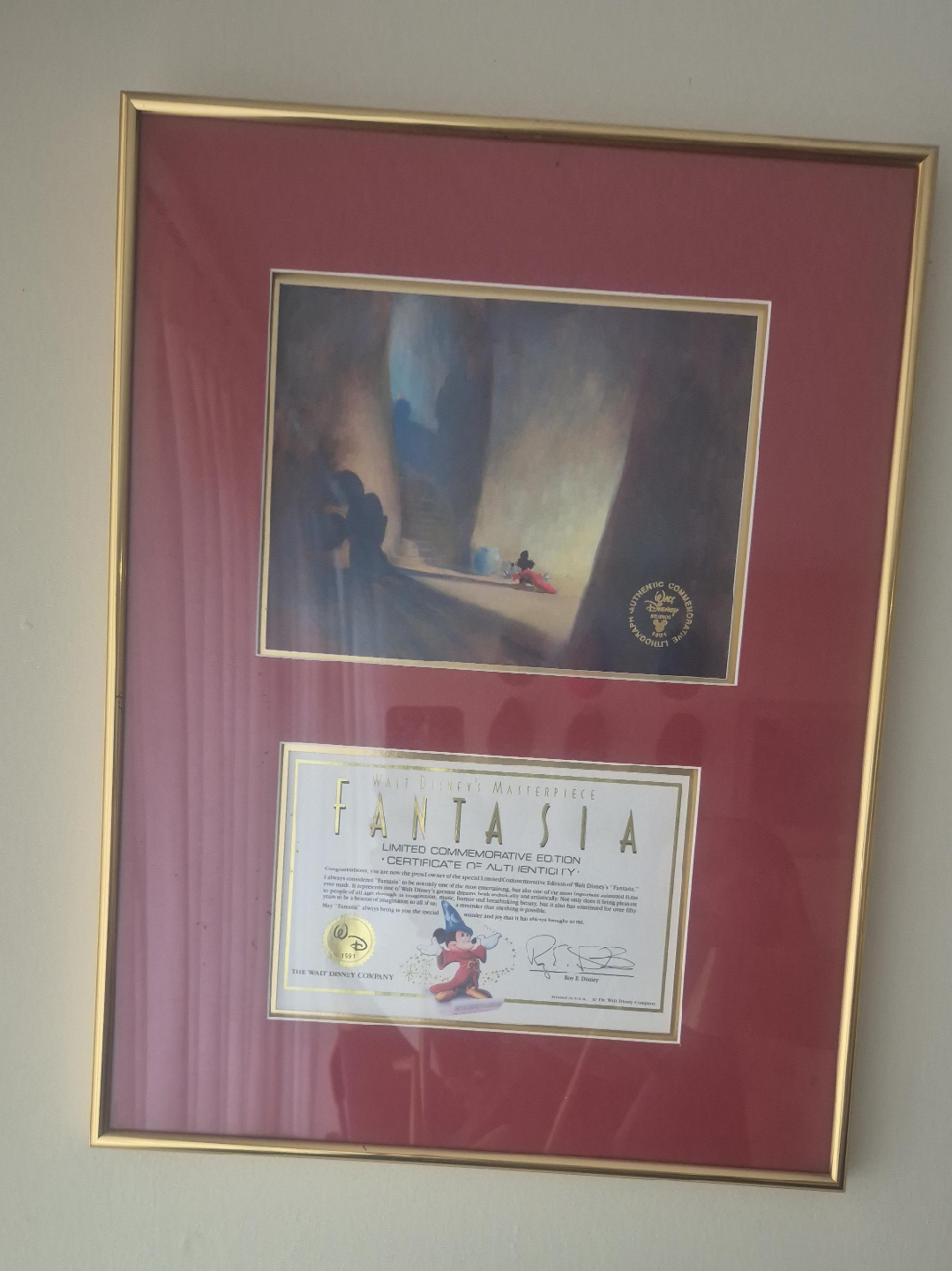 88Selling a framed Walt Disney's Fantasia Limited Commemorative Edition art piece. It comes with a Certificate of Authenticity. A great piece for any Disney fan!