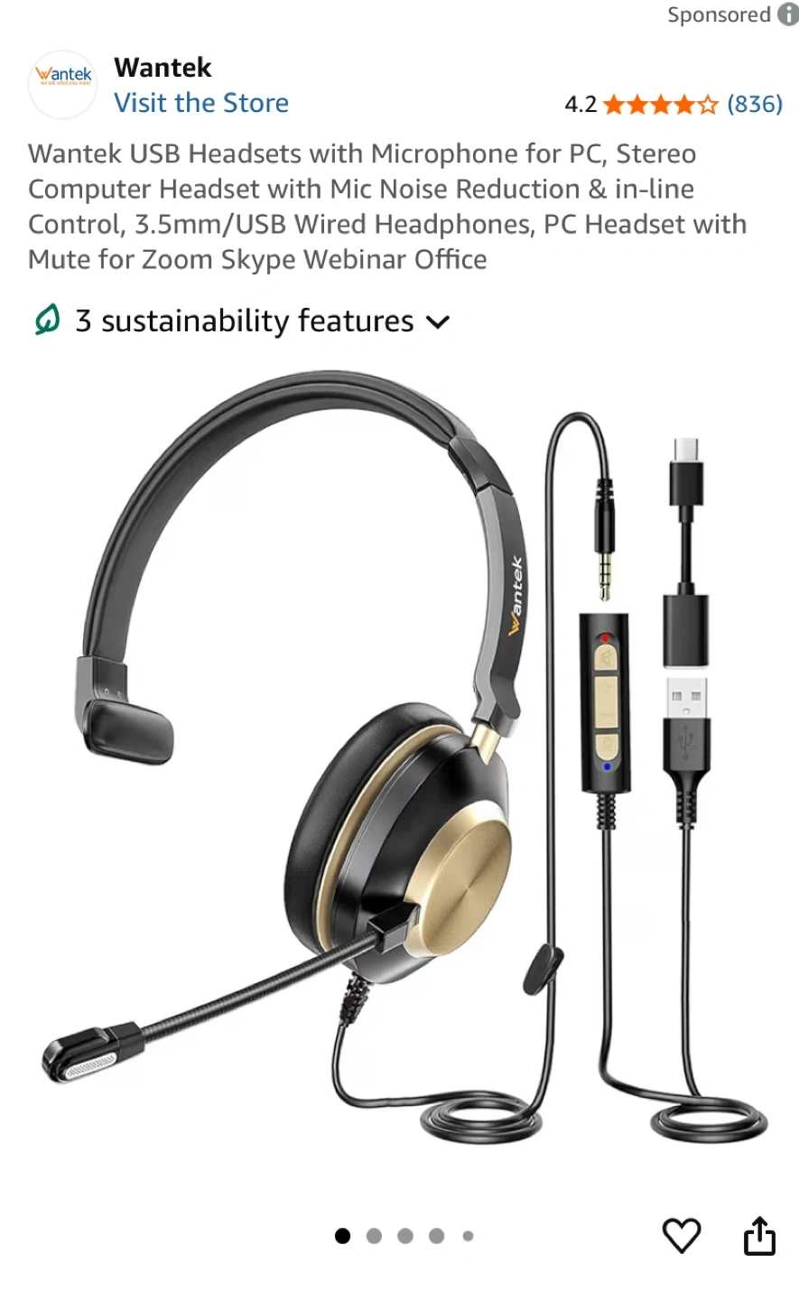 780Selling a brand new Wantek wired USB headset! It comes with the user manual and all original components in the box. Great for PC, stereo computer, Zoom, Skype, or webinars. Originally bought for $38.55