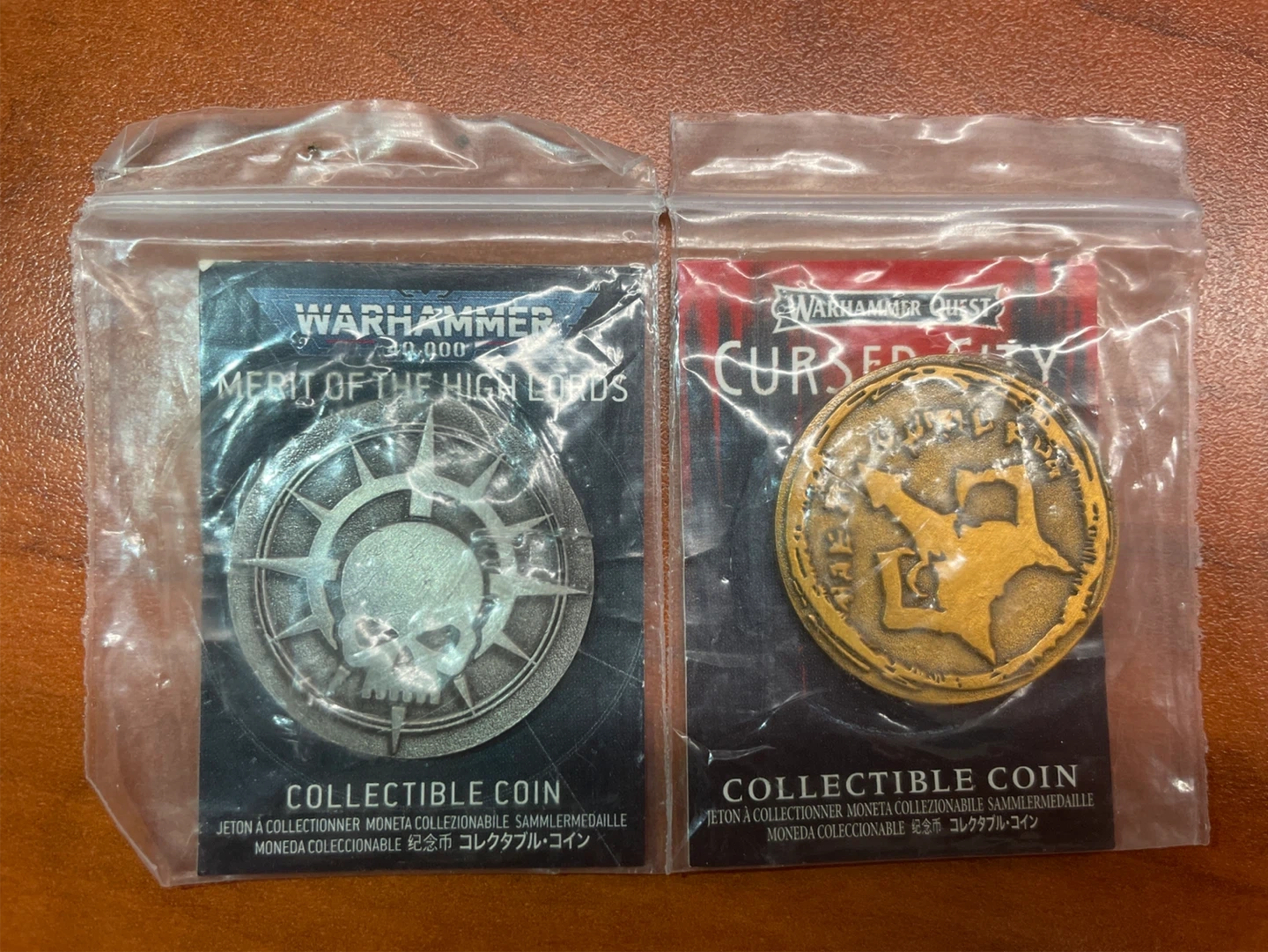 Selling a couple of Warhammer collectible coins. One is from Warhammer Quest Cursed City, and the other is Merit of the High Lords. Both are in their original packaging $10 for each $15 for both