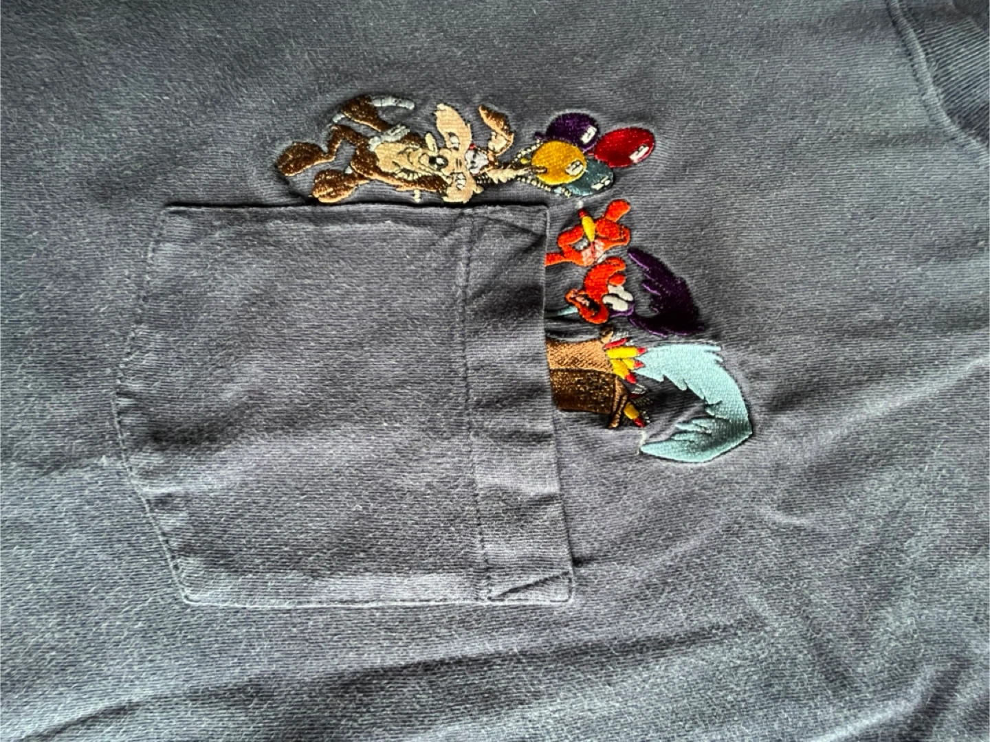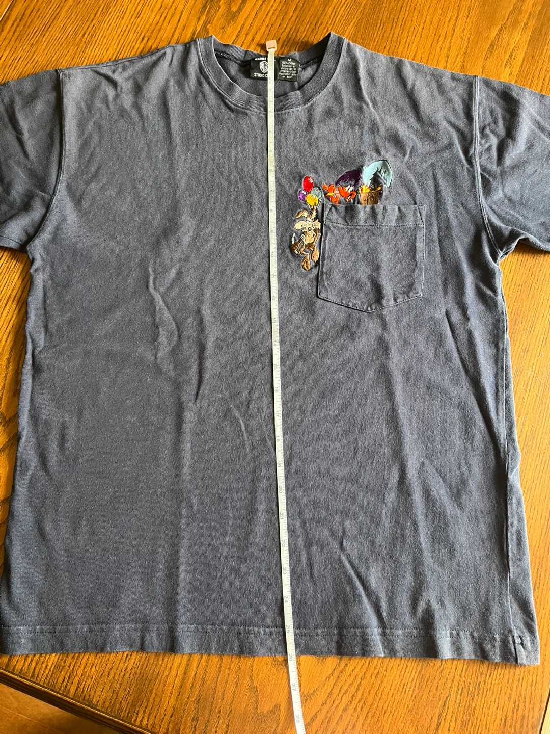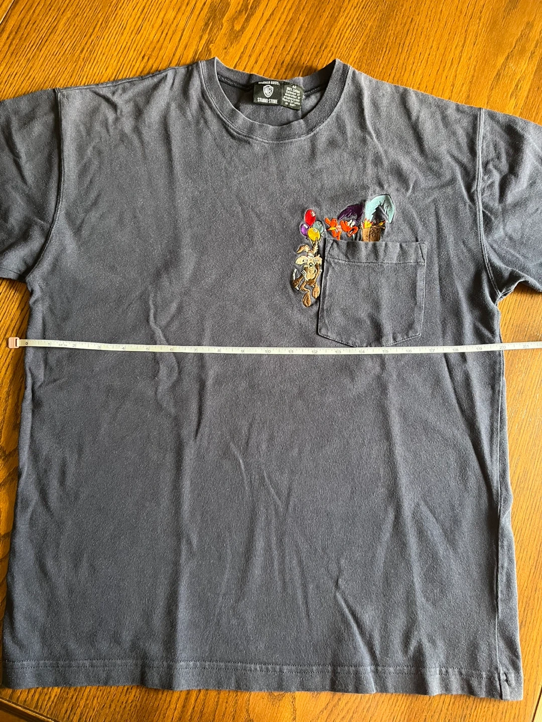 10Selling a Warner Bros. Studio Store T-shirt in size M. It features a cute design on the pocket. The shirt is made of 100% cotton.