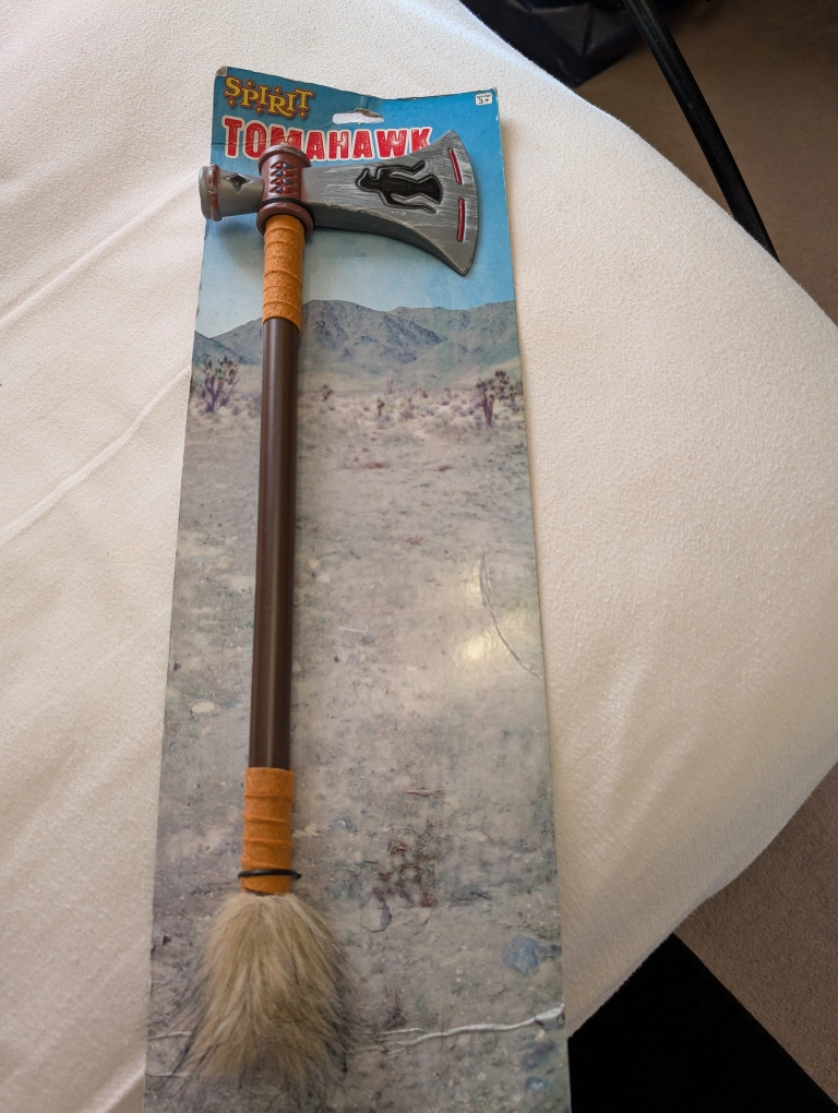 Warrior Adult Costume, Med. + tomahawk, $45 Now $20