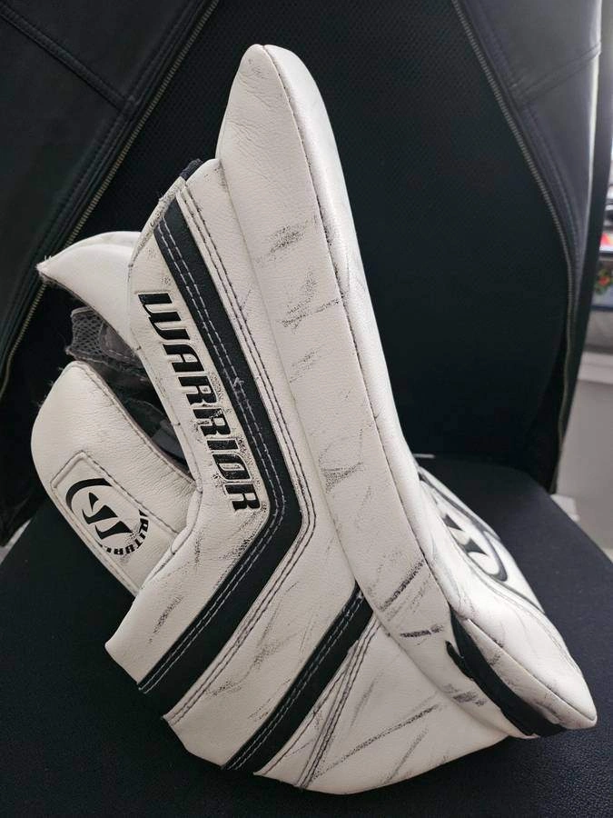 55Used, in excellent shape. VERY clean inside. Lots of life left in this PRO blocker. https://youtu.be/wZdhcnSiOrc The Warrior Ritual G2 Custom Pro Blocker follows the rest of the G2 Custom line in terms of innovation. Several new features make this blocker the best Warrior has ever designed. Starting with the blocking board which has a more pronounced flare at the top than the previous Ritual model allowing for the cuff to be a bit more opened while also presenting a larger blocking surface towards the shooter when you are in your stance. Added sidewall protection offers your hand with nearly 1” thick padding from the index finger to the wrist. The thumb and forefinger padding is dome shaped which ensures that impact will never touch your fingers directly. The digit protection can be adjusted depending on your preferences of a snug or loose finger fit. The G2 Custom blocker includes a removable palm that can be moved up or down the board for the perfect feel. Individual palms can be purchased for the blocker allowing for switching of damp palms to fresh ones in between periods.