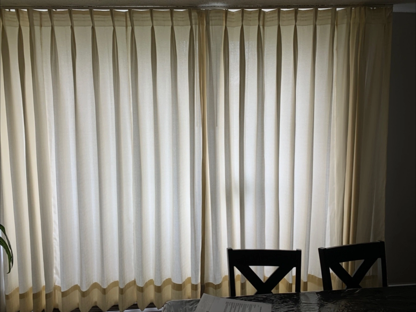 Lovely curtains made of a linen-look fabric. They feature a pleat detail, which create a full look. Can work with hooks or rings.