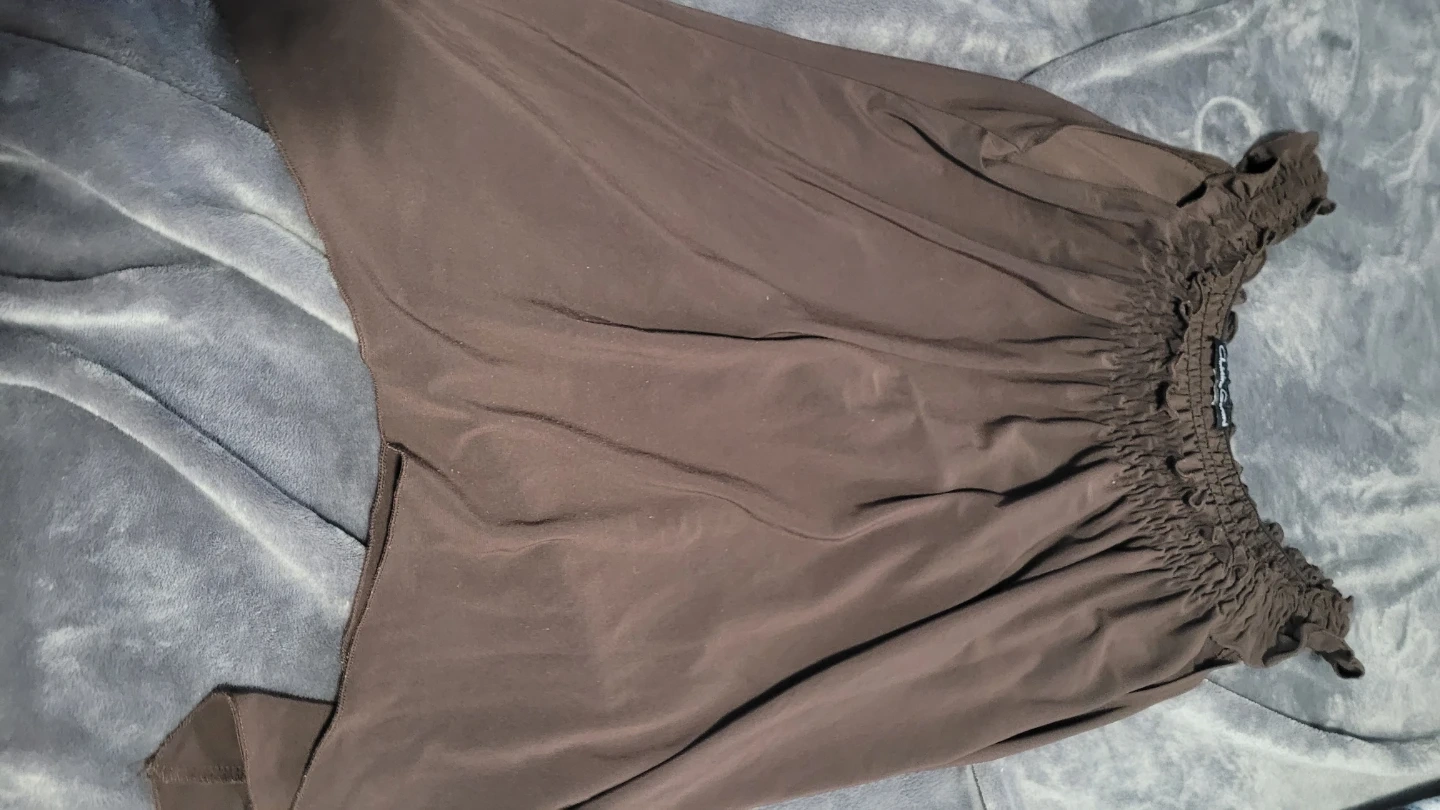 This Christine Gerard blouse features a dark brown colour with ruched detailing. It's made from a lightweight, sheer fabric. Great for layering or dressing up an outfit! The other tops are sleeveless all lightweight 2 are cotton and the rest are sheer fabric. Barely worn. Smoke and pet free home. Size Large.