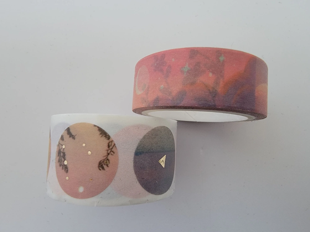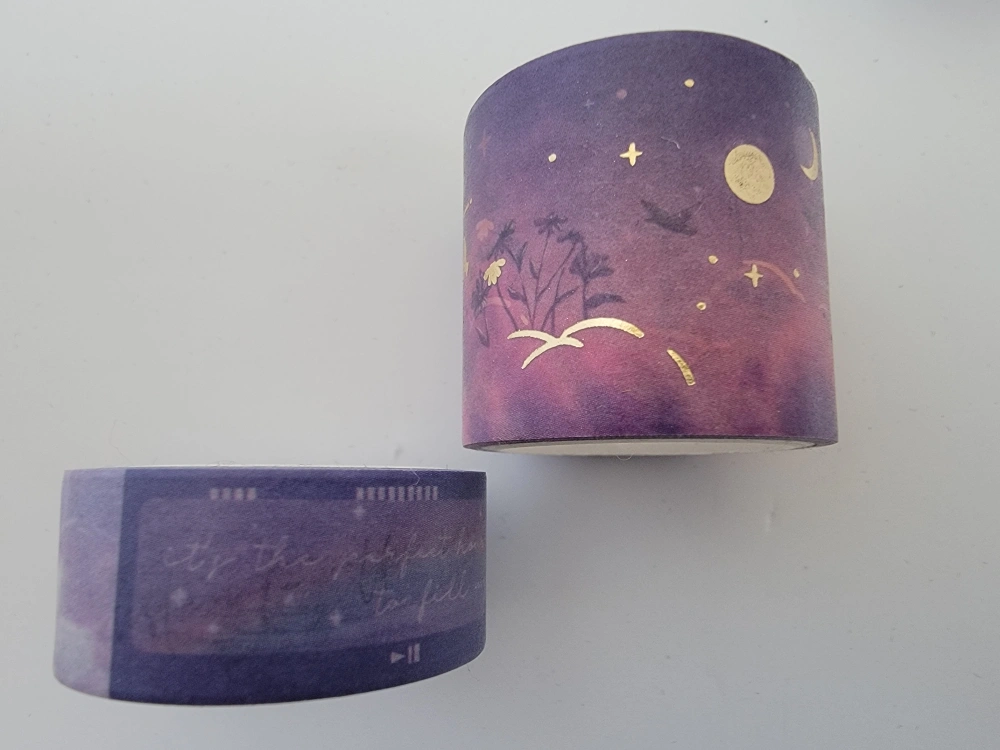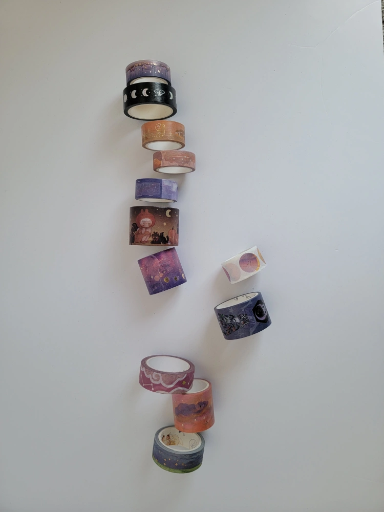 Selling a set of washi tape with various designs (12 total). Great for crafts, scrapbooking, or adding a decorative touch to your planner! The set includes tapes with stars, moons, Halloween themes, and other cute patterns. Perfect for adding a bit of flair to your projects. Some of the washii tapes were used and there still plenty of washii tape to be enjoyed. Open to negotiating the price; please reach out. Thank you for taking a look at my listing! Have a wonderful day.