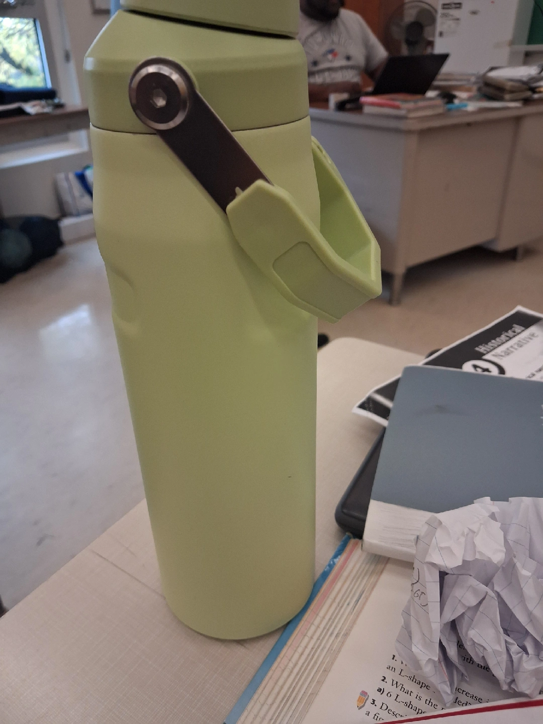 25Selling a water bottle in a light green colour. It has a handle for easy carrying. Perfect for staying hydrated on the go!