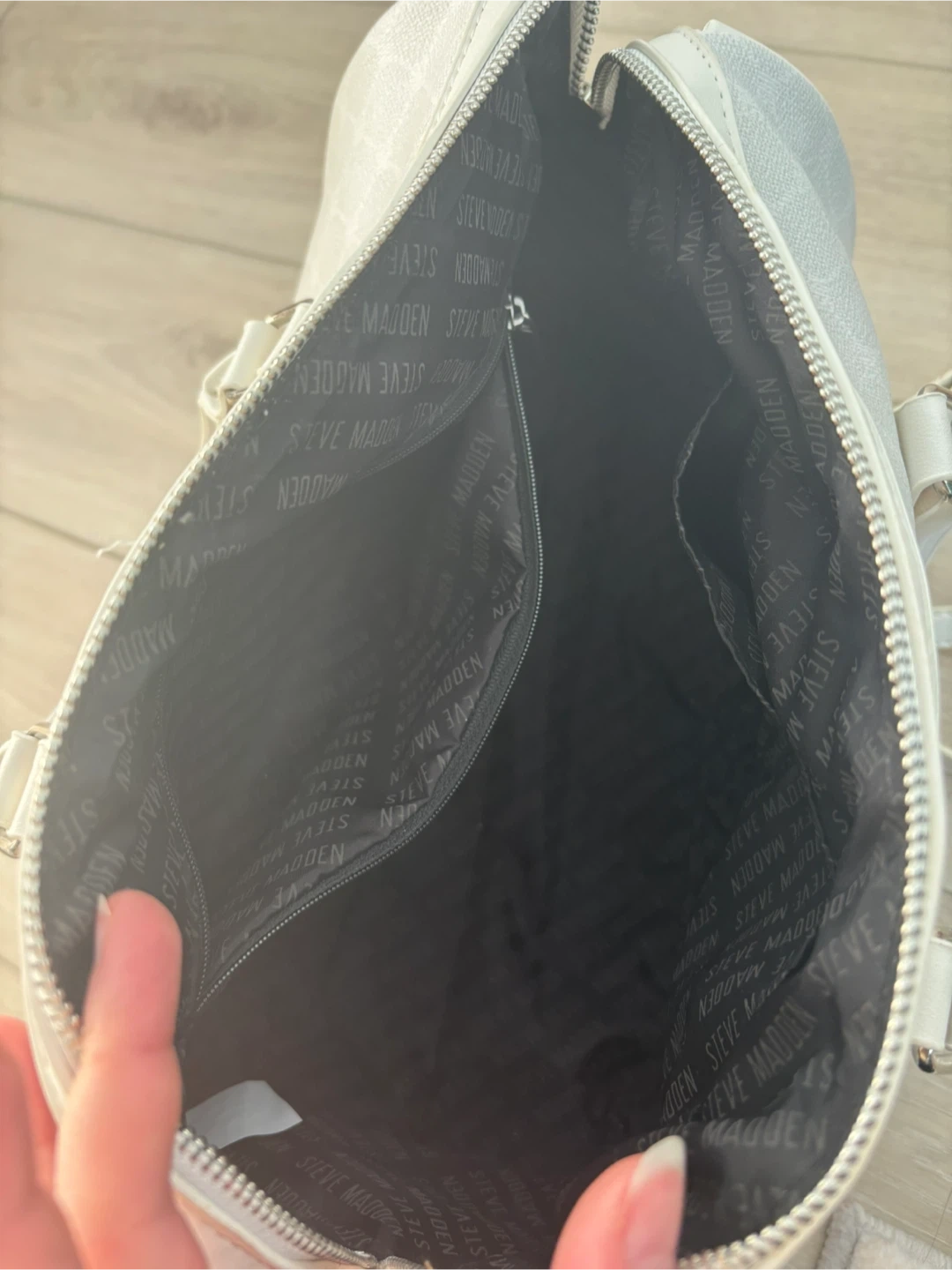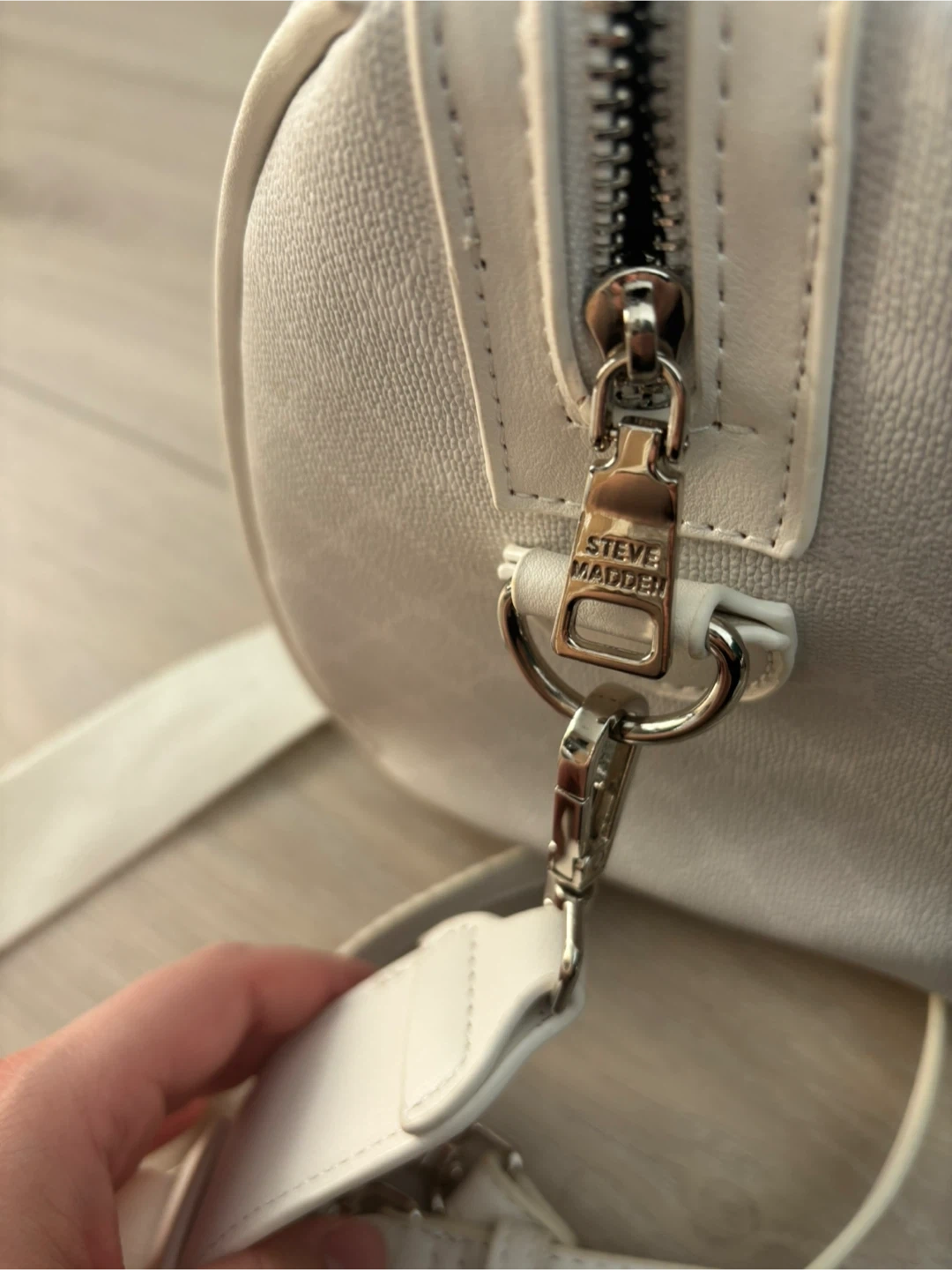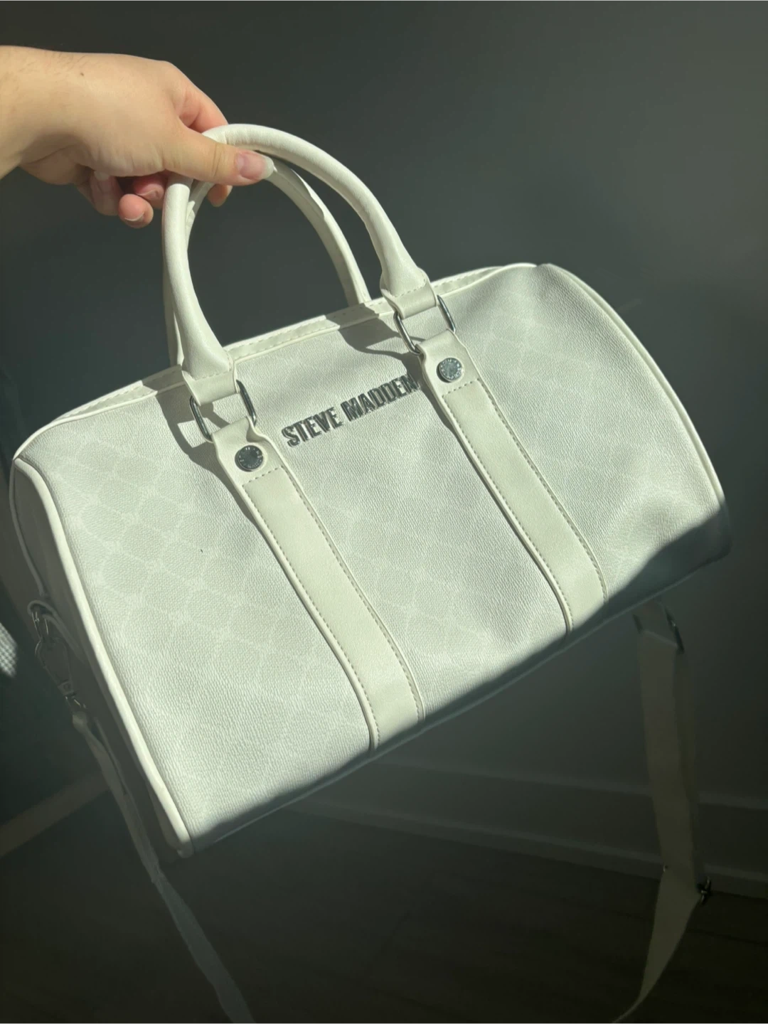 Mini White Steve Madden duffle bag style purse