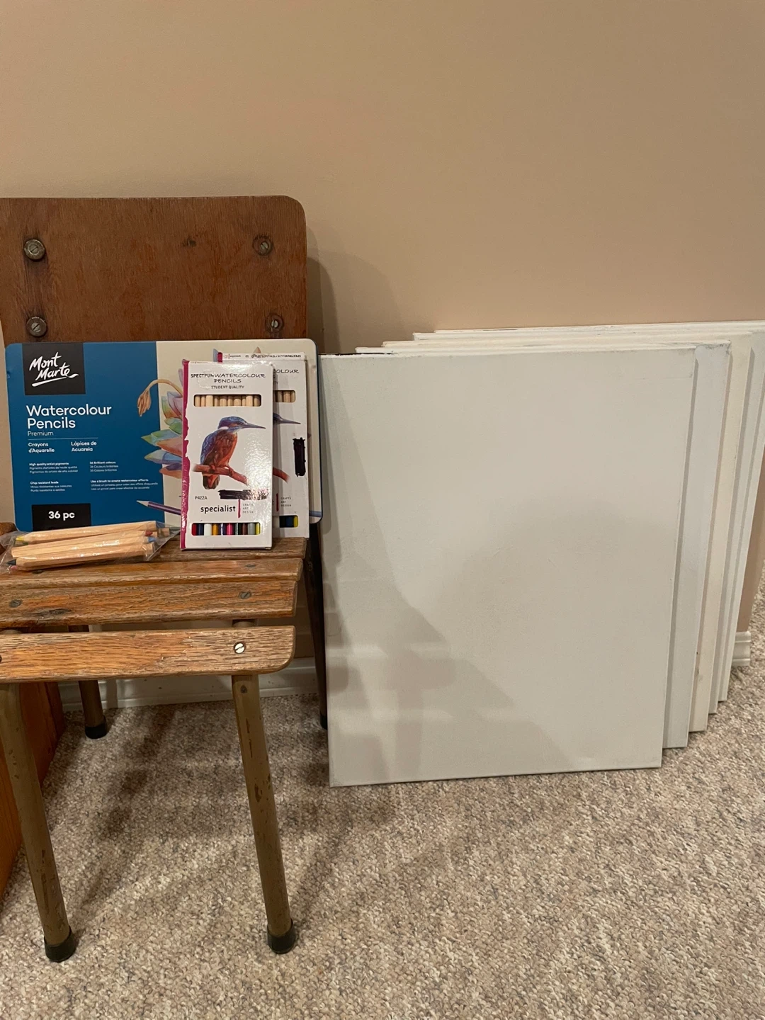 Perfect for the practicing artist! Watercolour pencils as pictured. Each canvas has been repainted white for a fresh start.