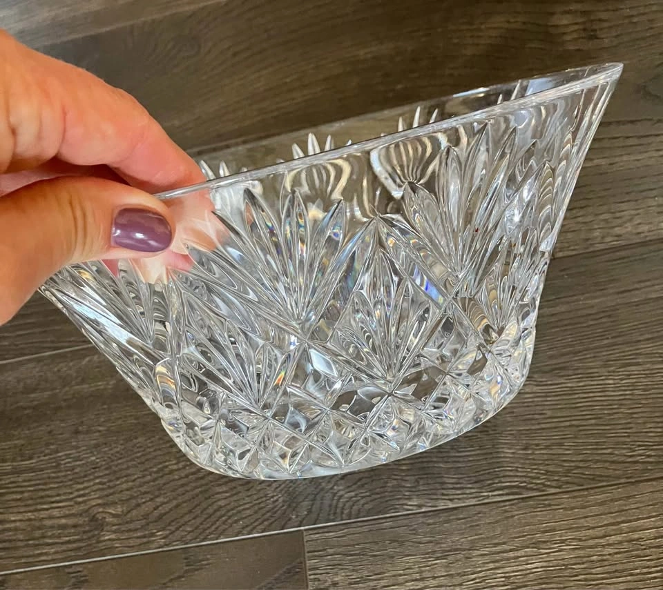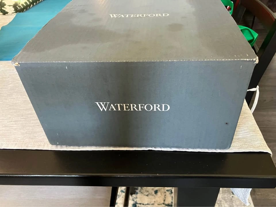 Brand new, never used! Retails new at $165+. This was a wedding gift that won’t be used by recipient. Beautifully cut crystal design will elevate any dinner table! Original packaging (although top of box is slightly discoloured).