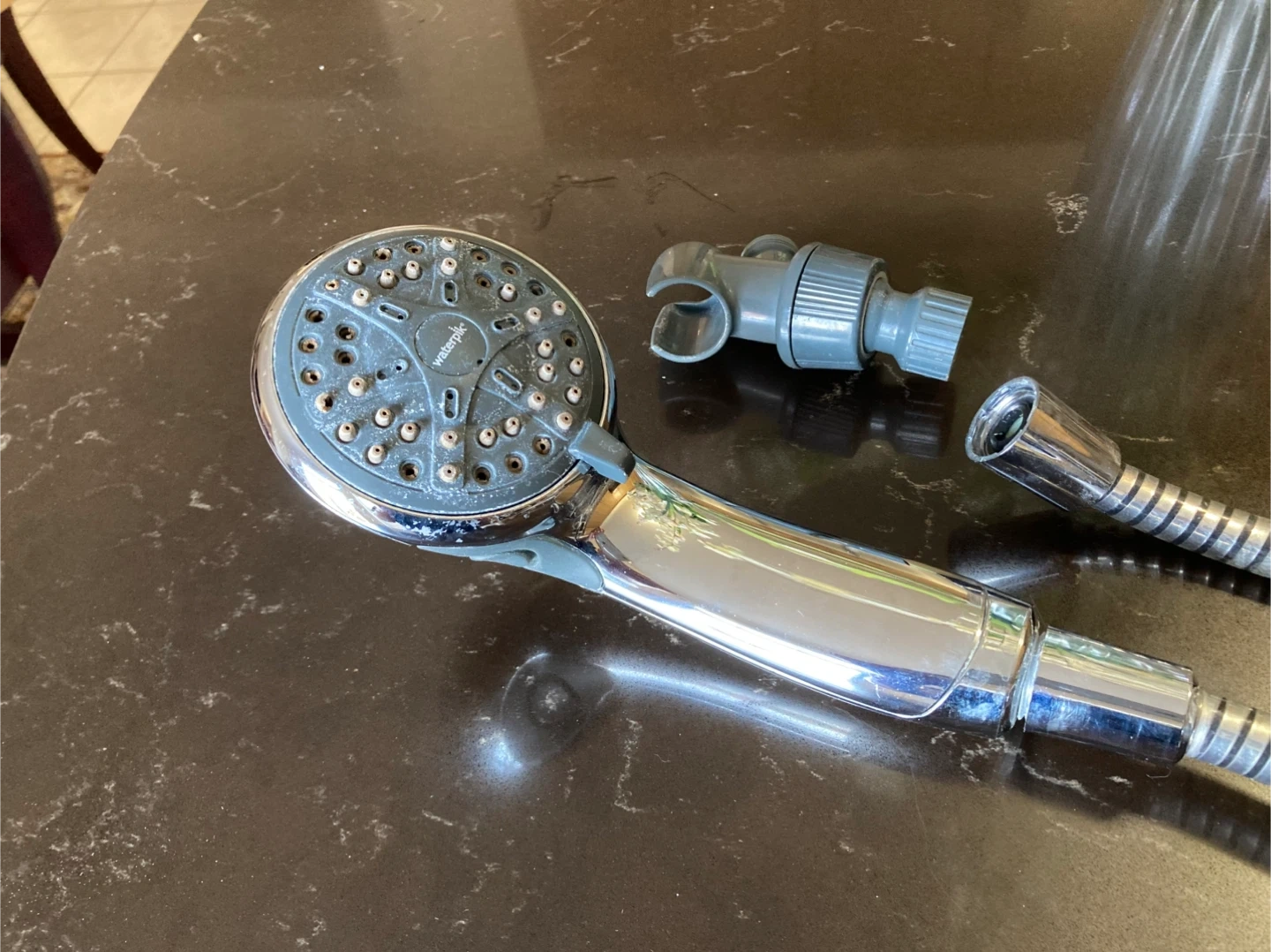 23Selling a Waterpik shower head. It shows some signs of use, but is still functional. It comes with the hose and connector.