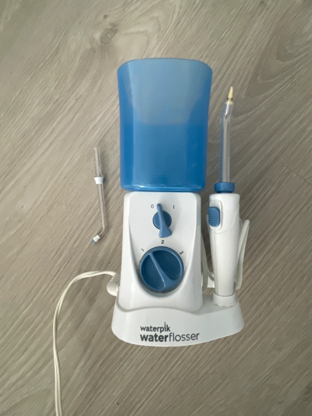 Selling a Waterpik waterflosser. It’s travel size so a little smaller than normal one. It’s good for travel. It's in good condition and ready to help you keep your pearly whites sparkling! Perfect for getting those hard-to-reach spots between your teeth